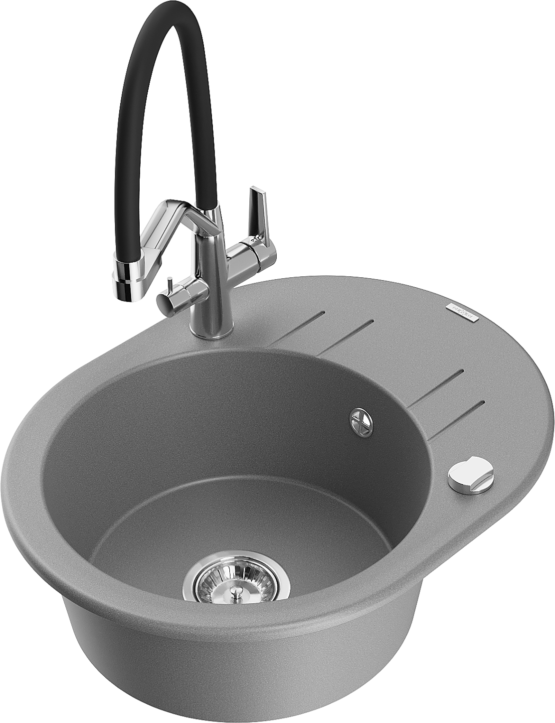 Mexen Kevin fregadero de cocina de granito de 1 seno con grifo Duo, gris - 6517-71-671701-07