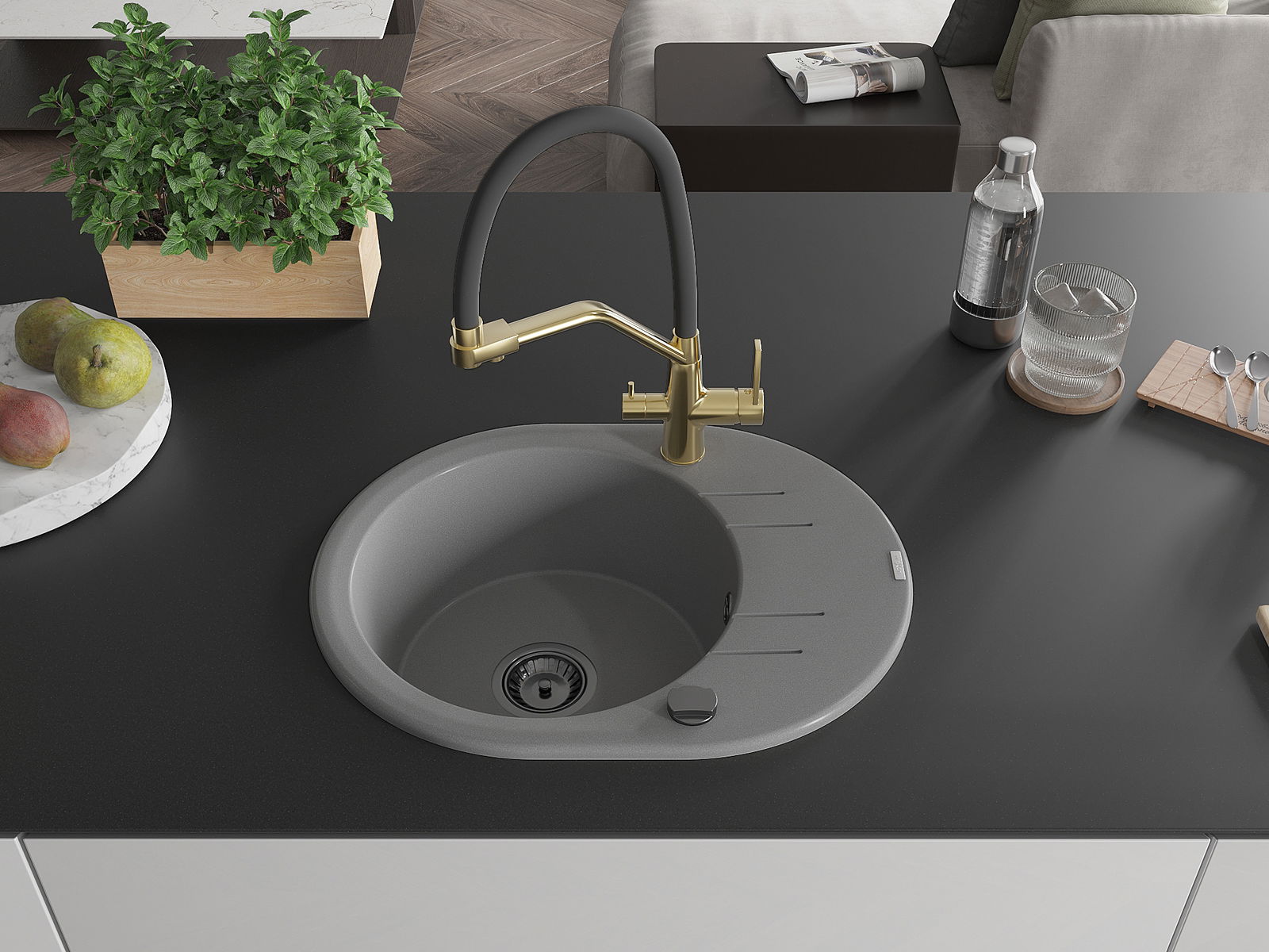 El fregadero está hecho de granito de alta calidad. Constituye un complemento elegante y, sobre todo, práctico para cualquier cocina, independientemente de su estilo. La alta calidad y durabilidad del granito aseguran un uso durante muchos años.