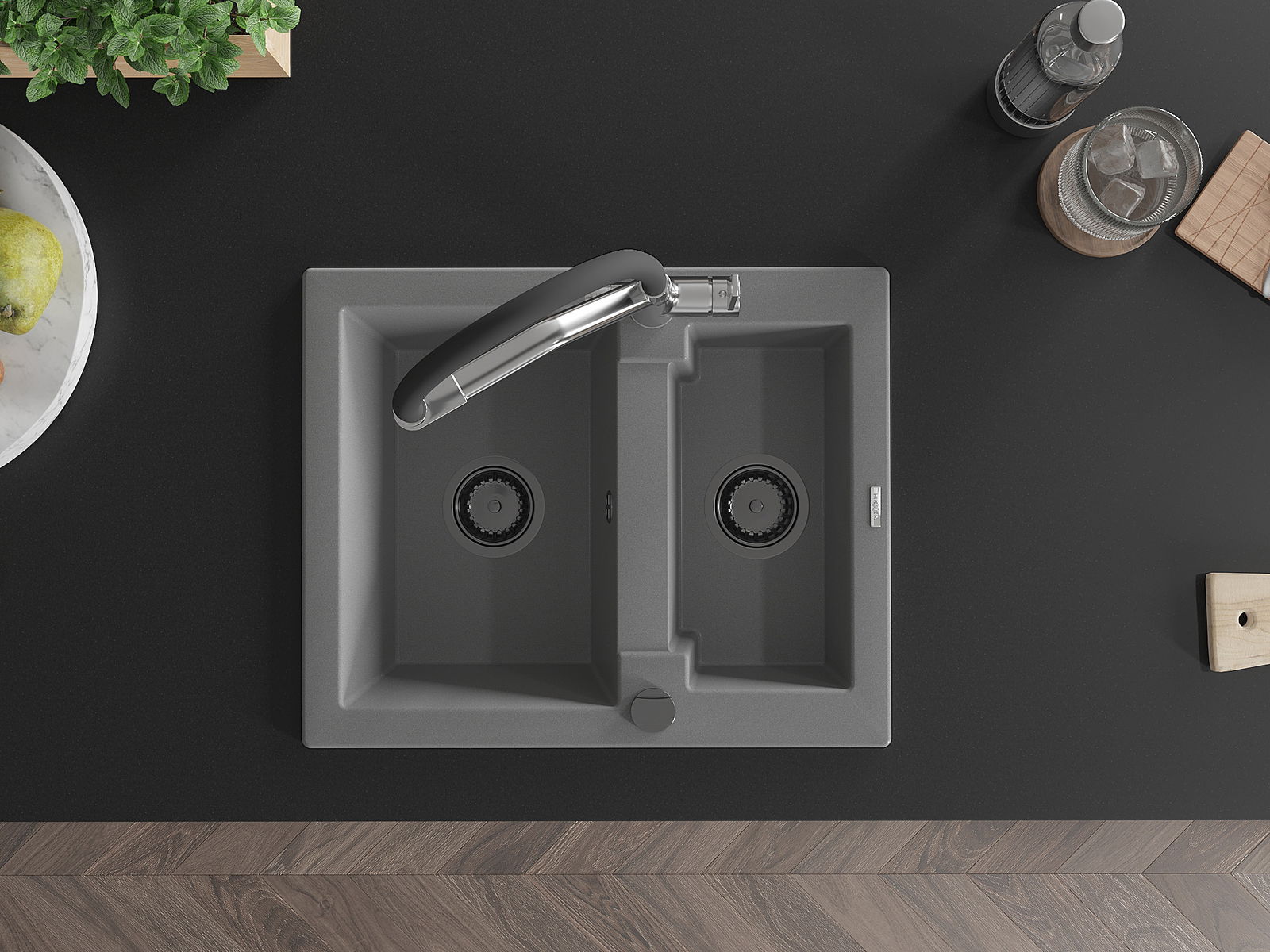Mexen Carlos fregadero de granito de 1,5 senos con grifo de cocina Duo, gris - 6518-71-671701-07-B