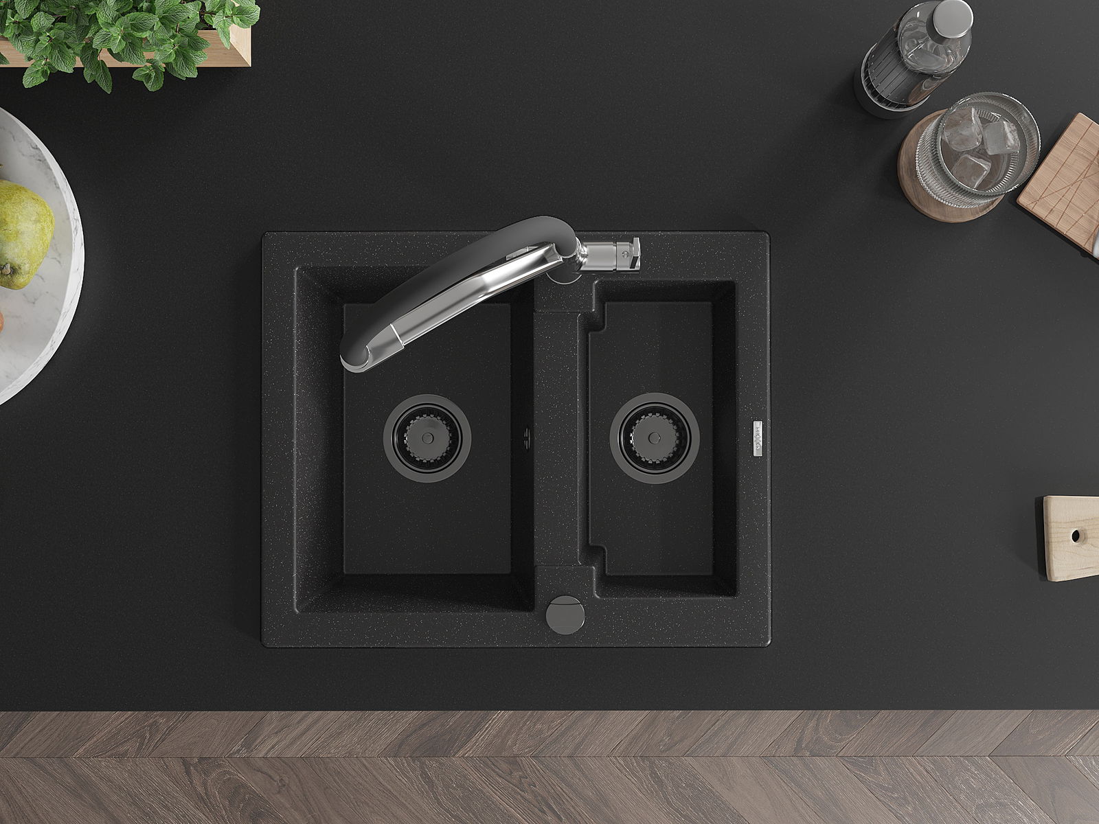 El fregadero está hecho de granito de alta calidad. Es un complemento elegante y, sobre todo, práctico para cualquier cocina, independientemente de su estilo. La alta calidad y durabilidad del granito aseguran un uso prolongado durante años.