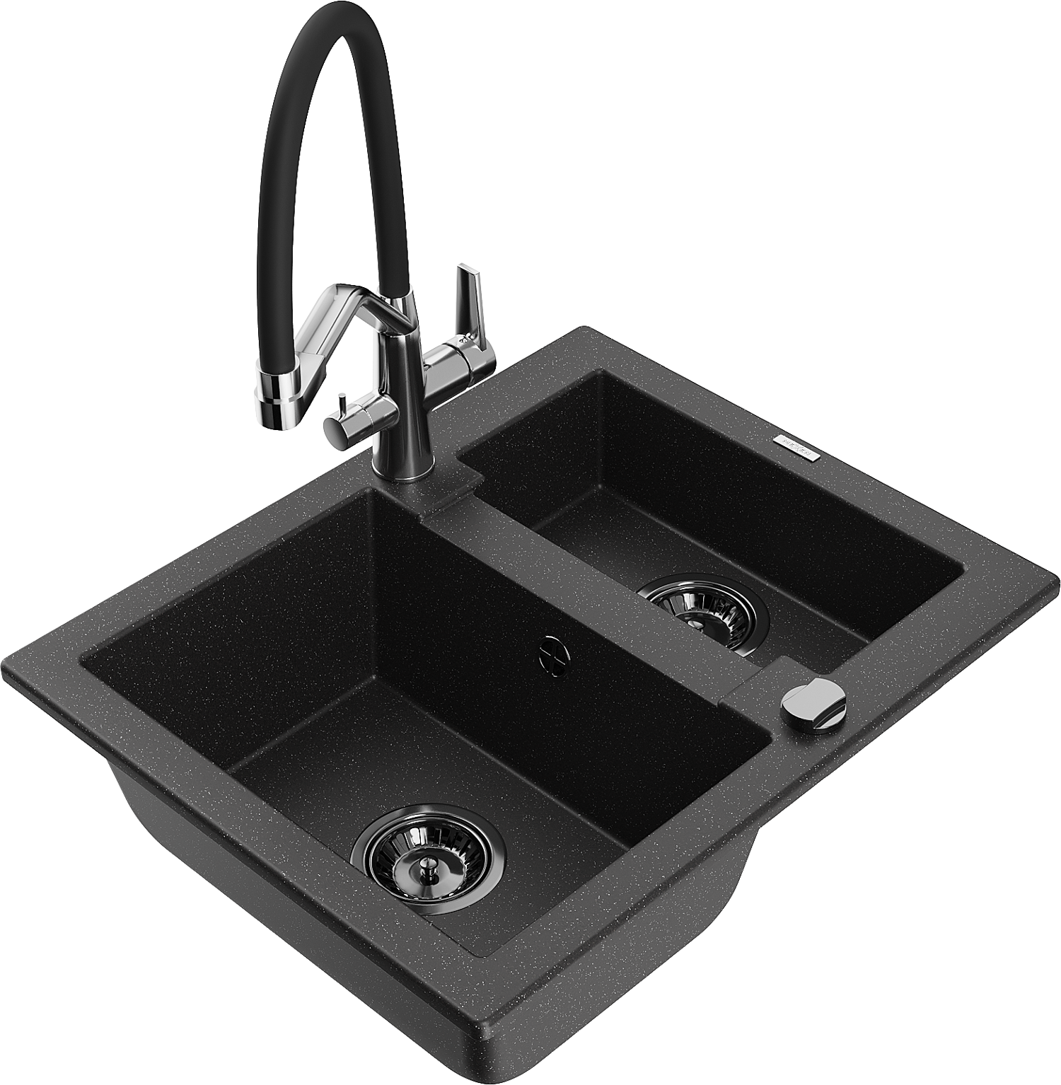 Mexen Carlos fregadero de granito 1,5 senos con grifo de cocina Duo, negro/metálico plateado - 6518-73-671701-07-B
