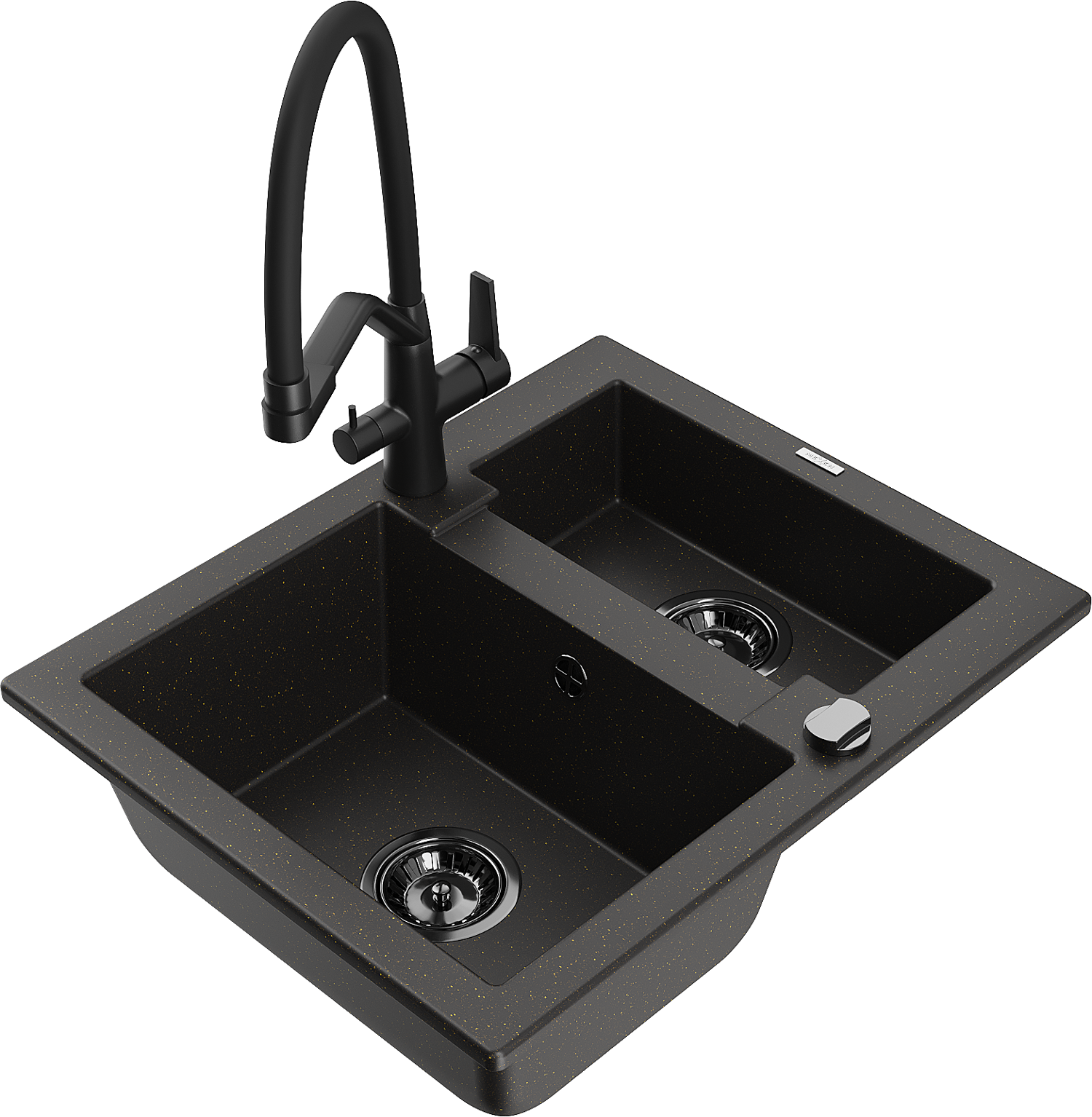 Mexen Carlos fregadero de granito 1,5-cubeta con grifo de cocina Duo, negro/oro metálico - 6518-75-671701-70-B