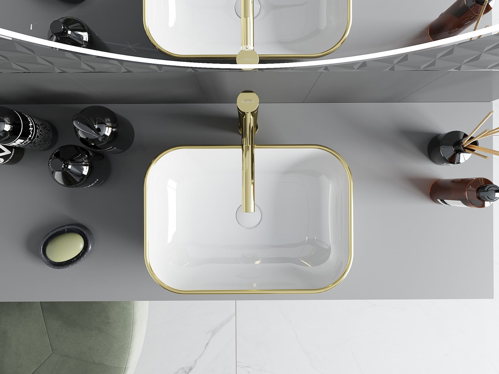 Mexen Rita lavabo sobre encimera 45 x 32 cm, blanco/oro borde - 21084505