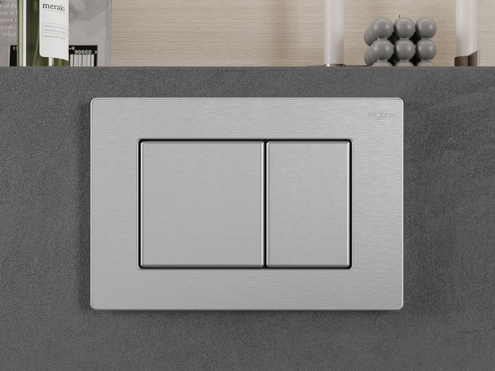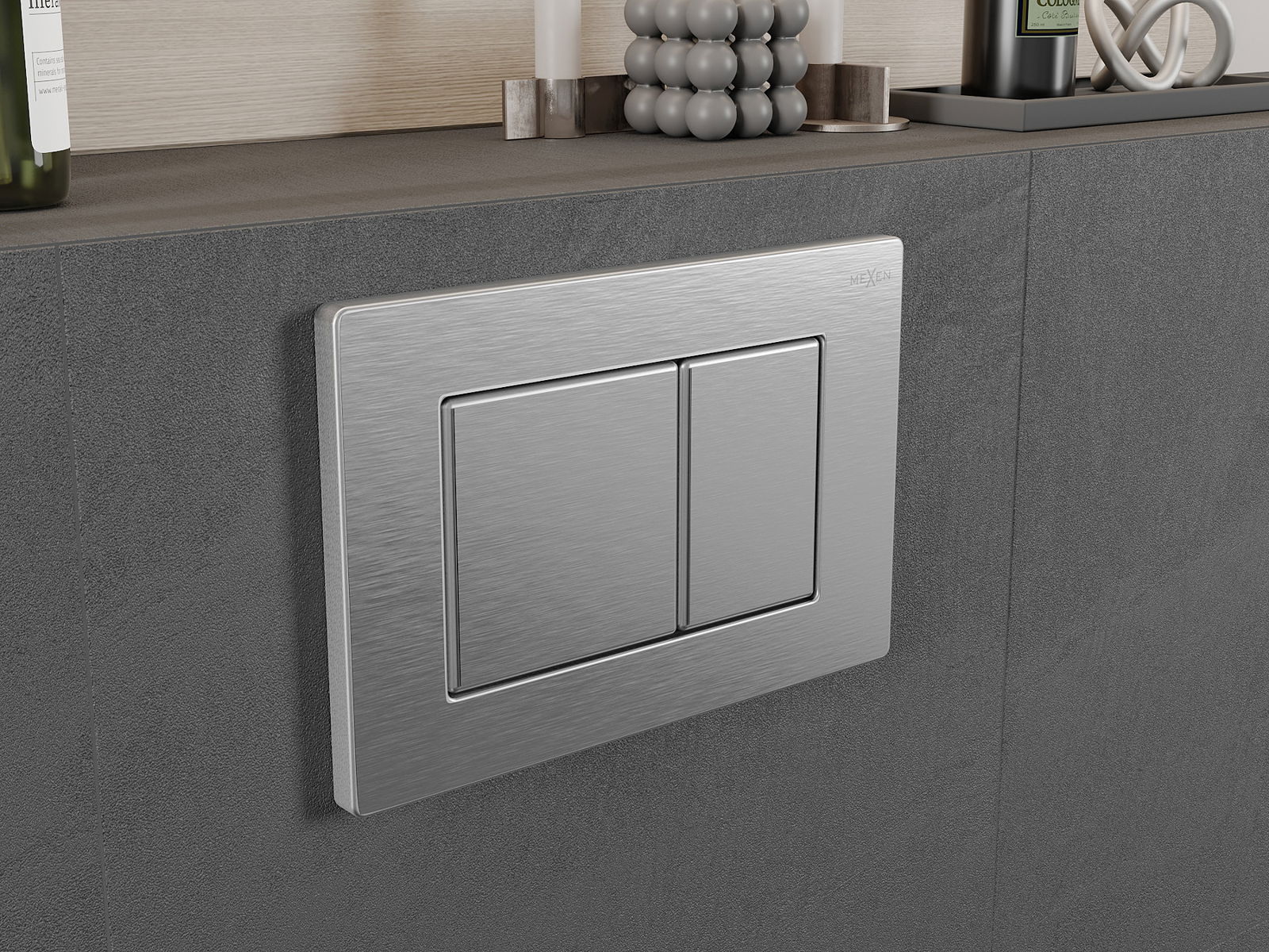 El botón está diseñado para bastidores empotrados, donde el lugar de montaje se encuentra en la parte frontal de la construcción. Esta ubicación garantiza un acceso fácil y un manejo cómodo de la descarga.