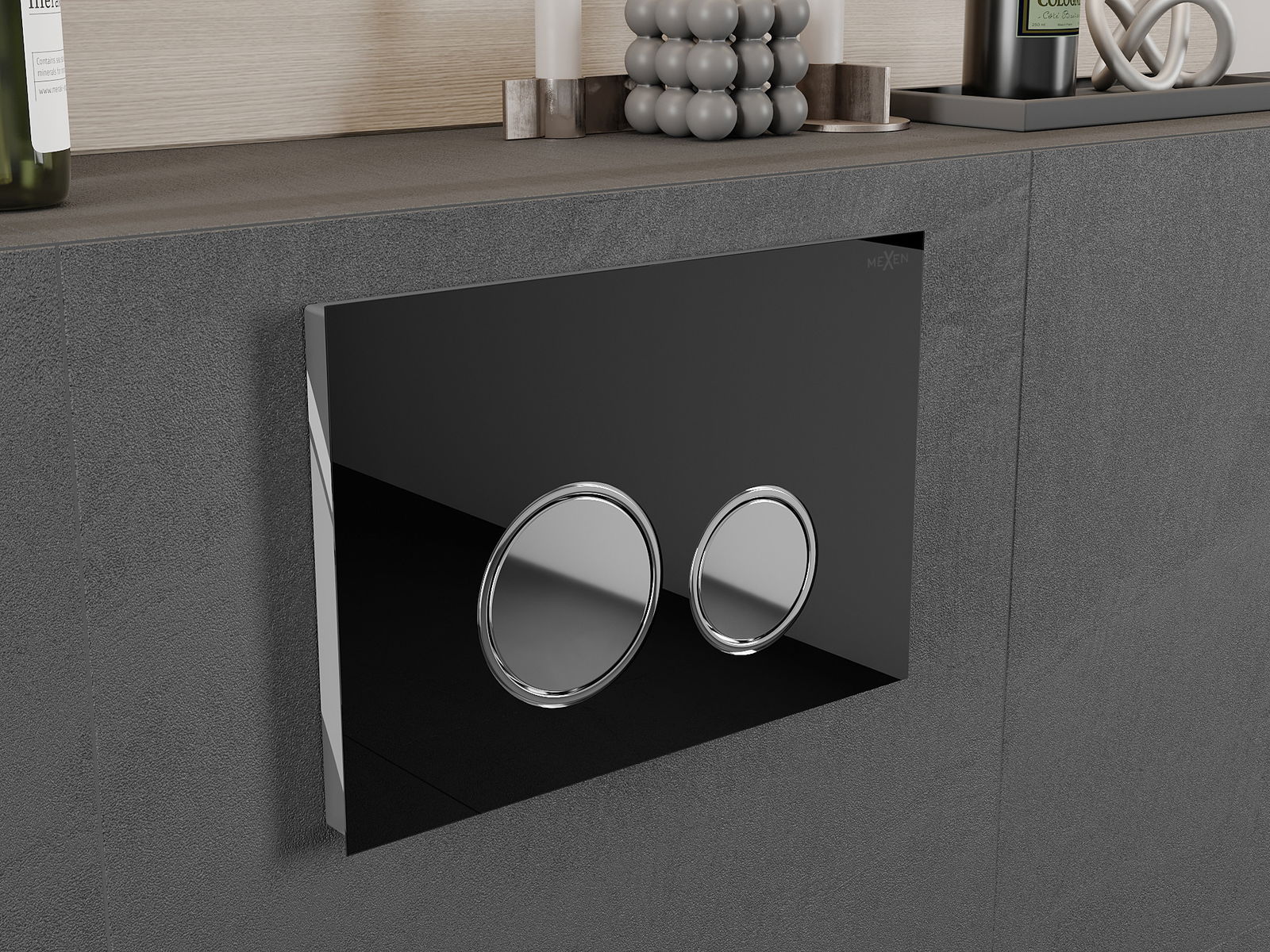 El botón está diseñado para bastidores empotrados, donde el lugar de montaje se encuentra en la parte frontal de la construcción. Esta ubicación garantiza un acceso fácil y un manejo cómodo de la descarga.