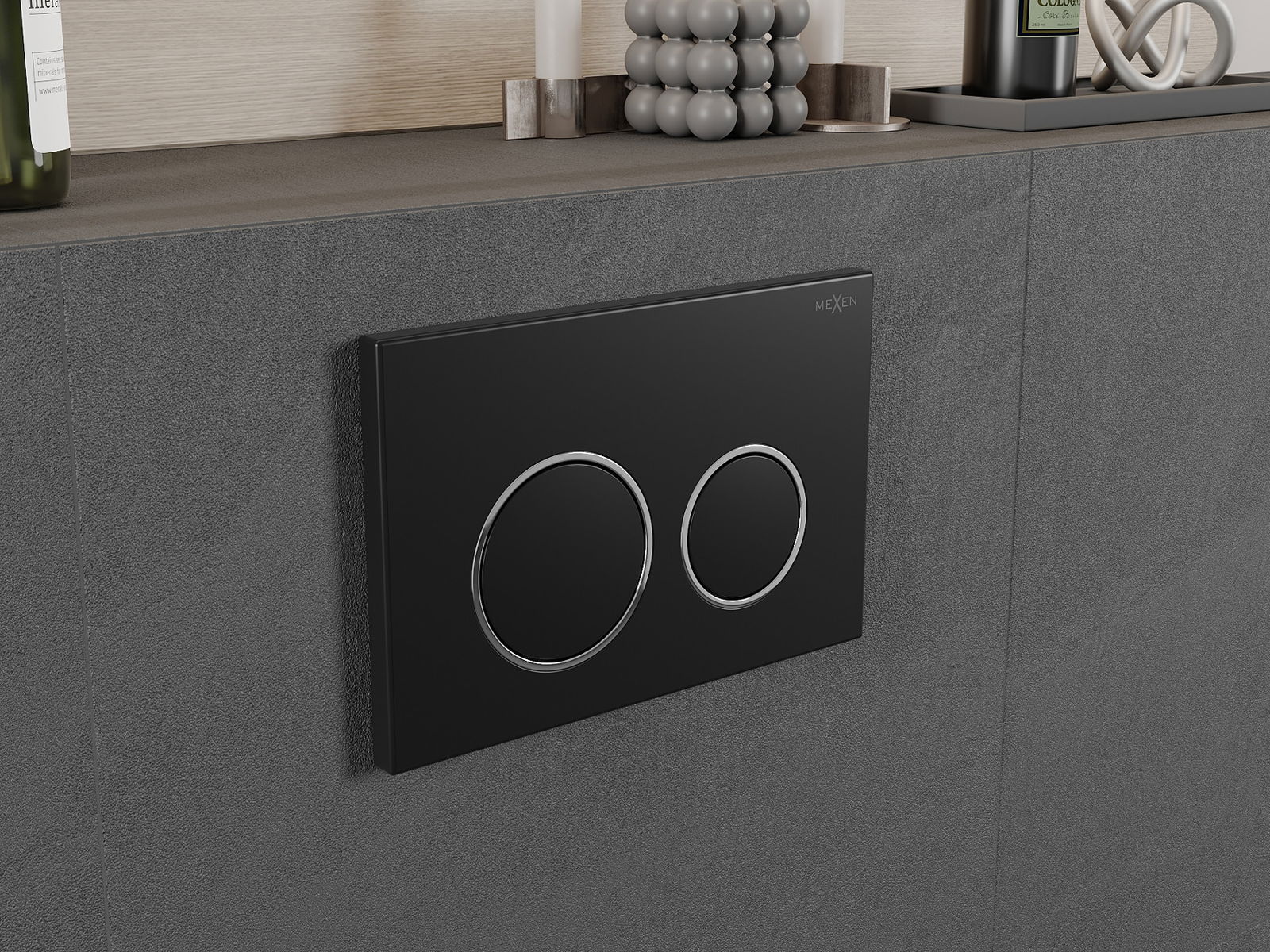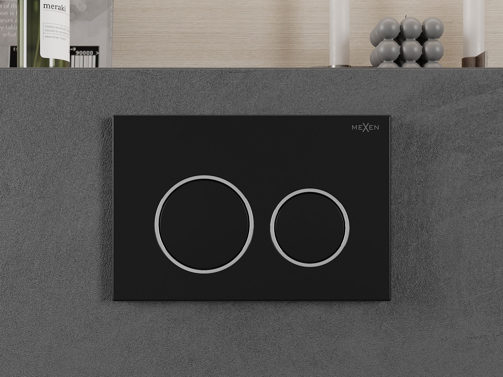 El botón está diseñado para los marcos Mexen de la serie XS. Puede montarse tanto desde el frente como desde la parte superior del marco, lo que aumenta su versatilidad. Esta solución facilita la instalación en diversas condiciones de montaje. Gracias a esto, el manejo del enjuague es cómodo e intuitivo.