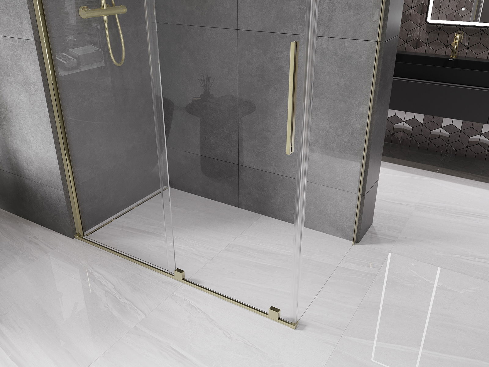 Mexen Velar cabina de ducha corredera 140 x 70 cm, transparente, dorada - 871-140-070-01-50