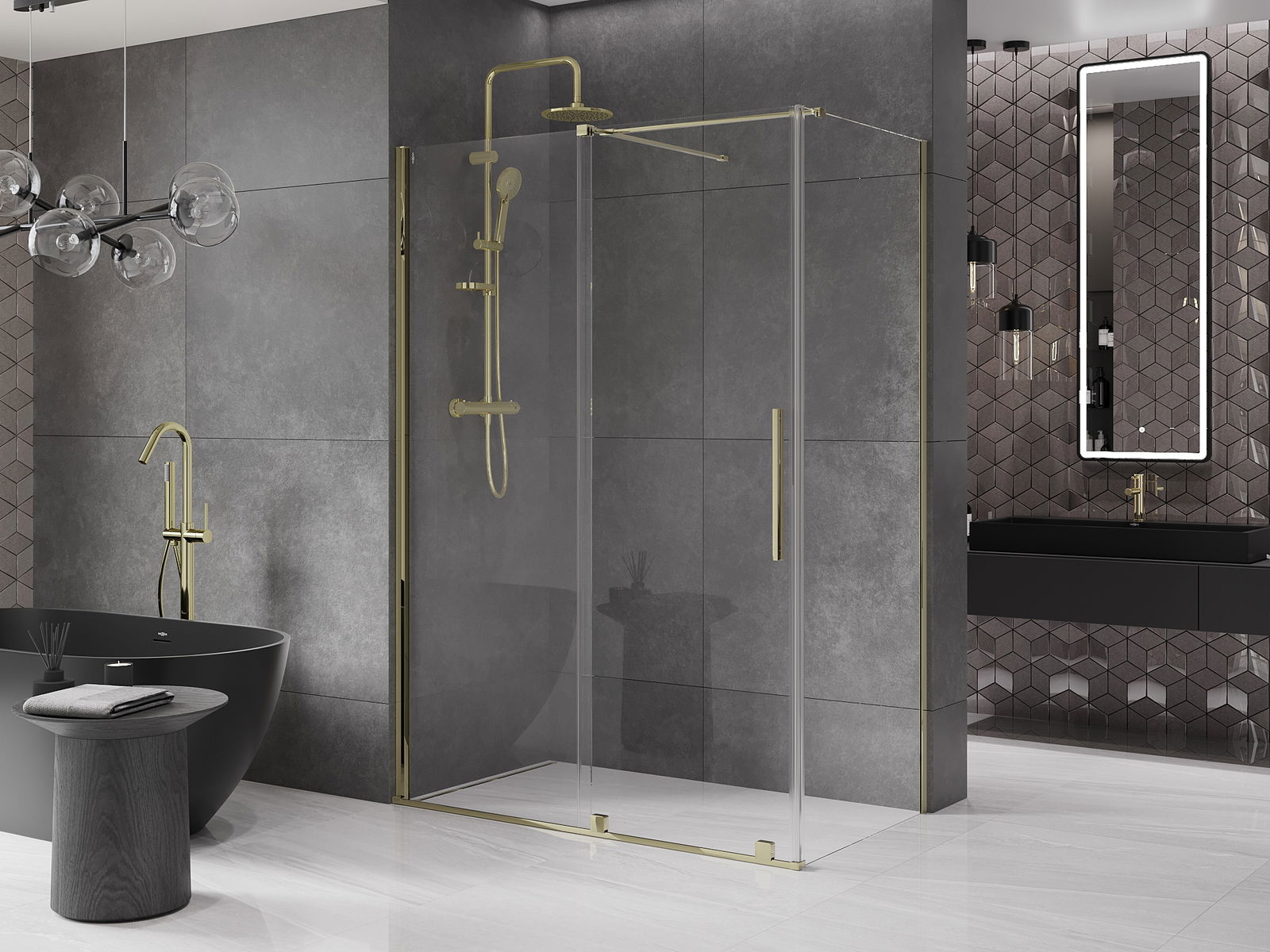 Mexen Velar cabina de ducha corredera 150 x 90 cm, transparente, dorada - 871-150-090-01-50