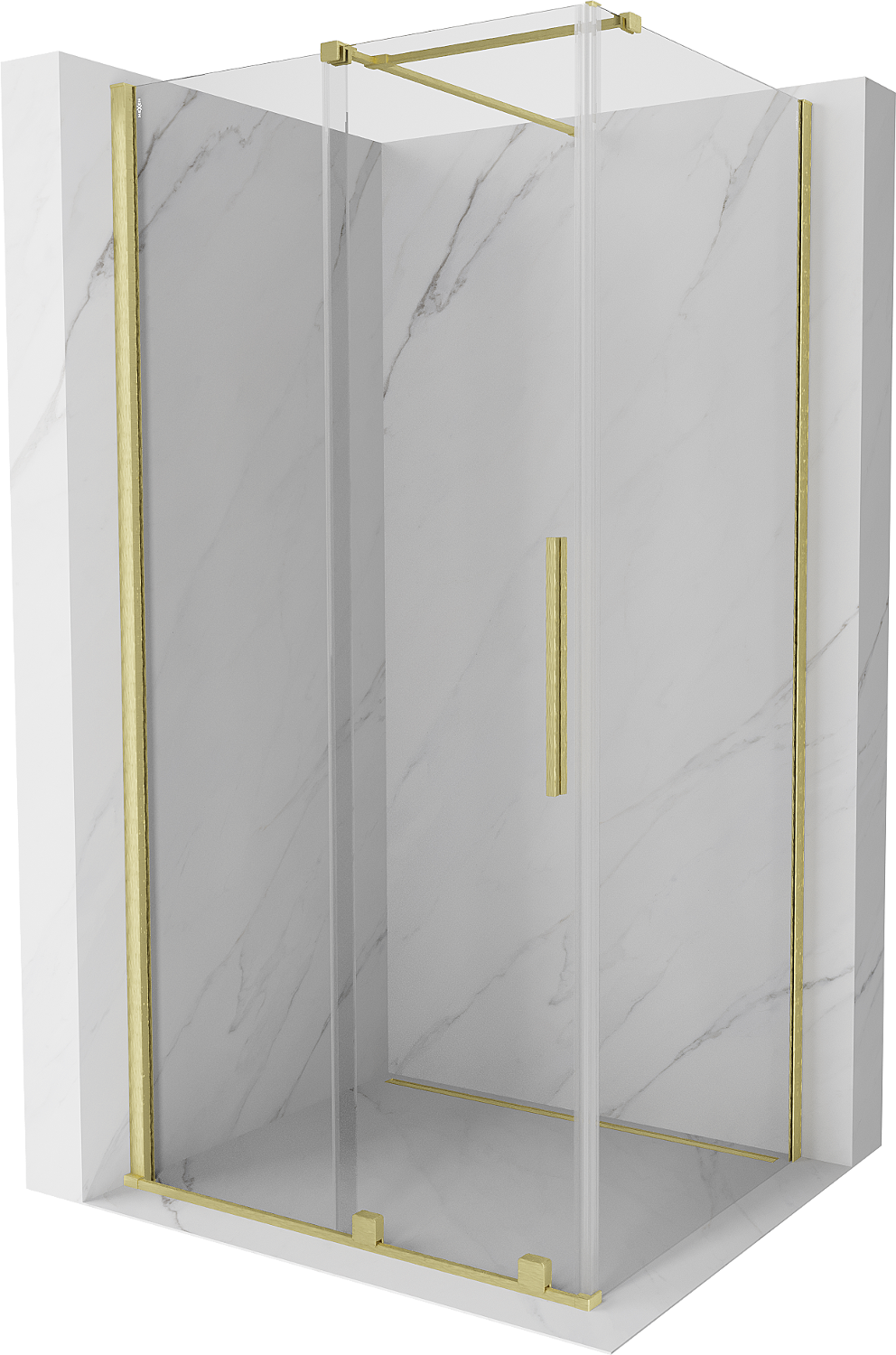 Mexen Velar cabina de ducha corredera 90 x 100 cm, transparente, oro cepillado - 871-090-100-01-55
