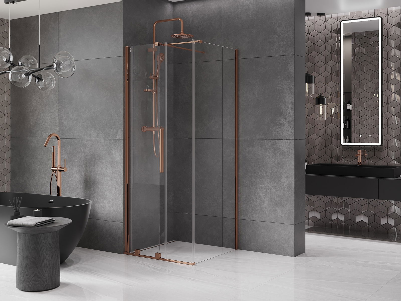 Mexen Velar cabina de ducha deslizante 110 x 110 cm, transparente, oro rosa - 871-110-110-01-60