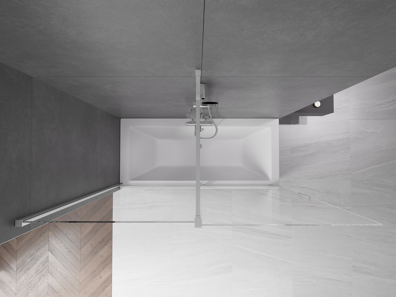 Protección efectiva contra el derrame de agua durante el baño. La mampara tiene juntas que se ajustan perfectamente a la superficie del vidrio y al borde de la bañera. Solución funcional que garantiza seguridad y facilidad de limpieza.