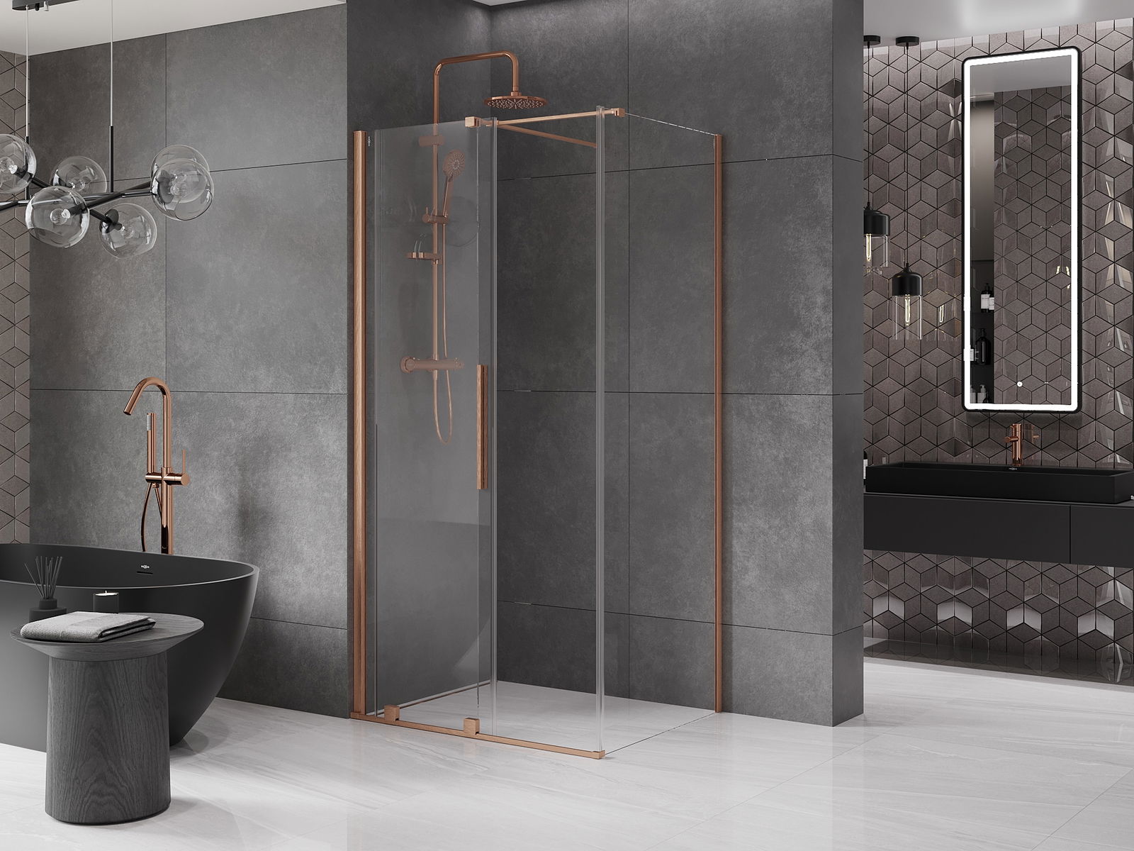 El práctico y cómodo asa está hecho de acero inoxidable. La forma moderna combinada con un acabado a juego con el color de los perfiles le da a todo un aspecto moderno y elegante, resaltando la estética de cada baño.
