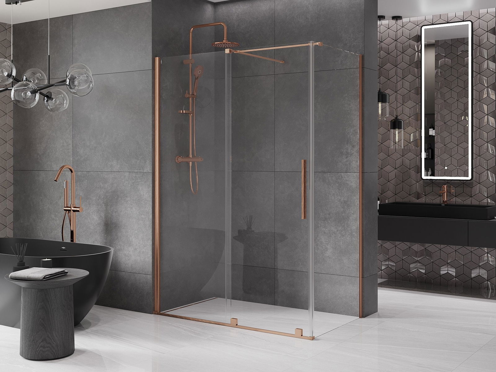 Mexen Velar cabina de ducha corredera 150 x 85 cm, transparente, cobre cepillado - 871-150-085-01-65