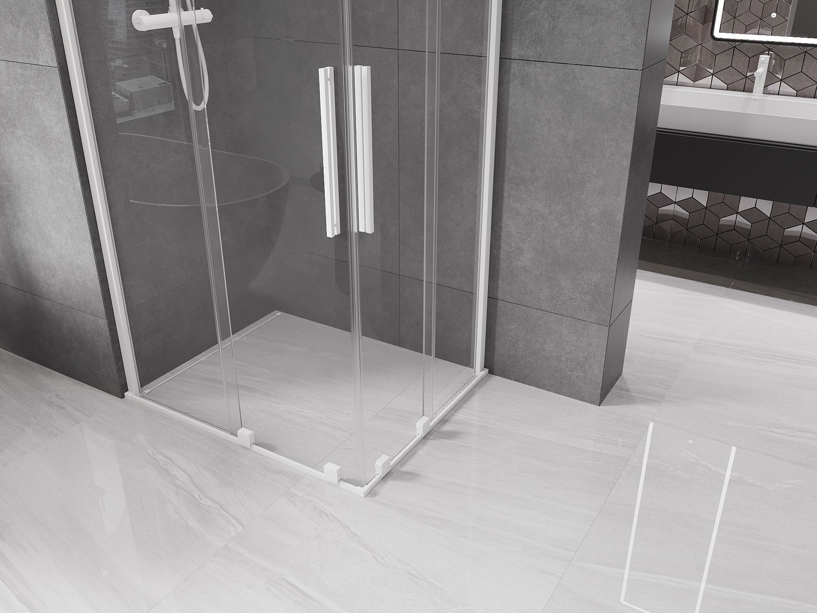 El práctico y cómodo asa está hecho de acero inoxidable. La forma moderna combinada con un acabado a juego con el color de los perfiles le da a todo un aspecto moderno y elegante, resaltando la estética de cada baño.