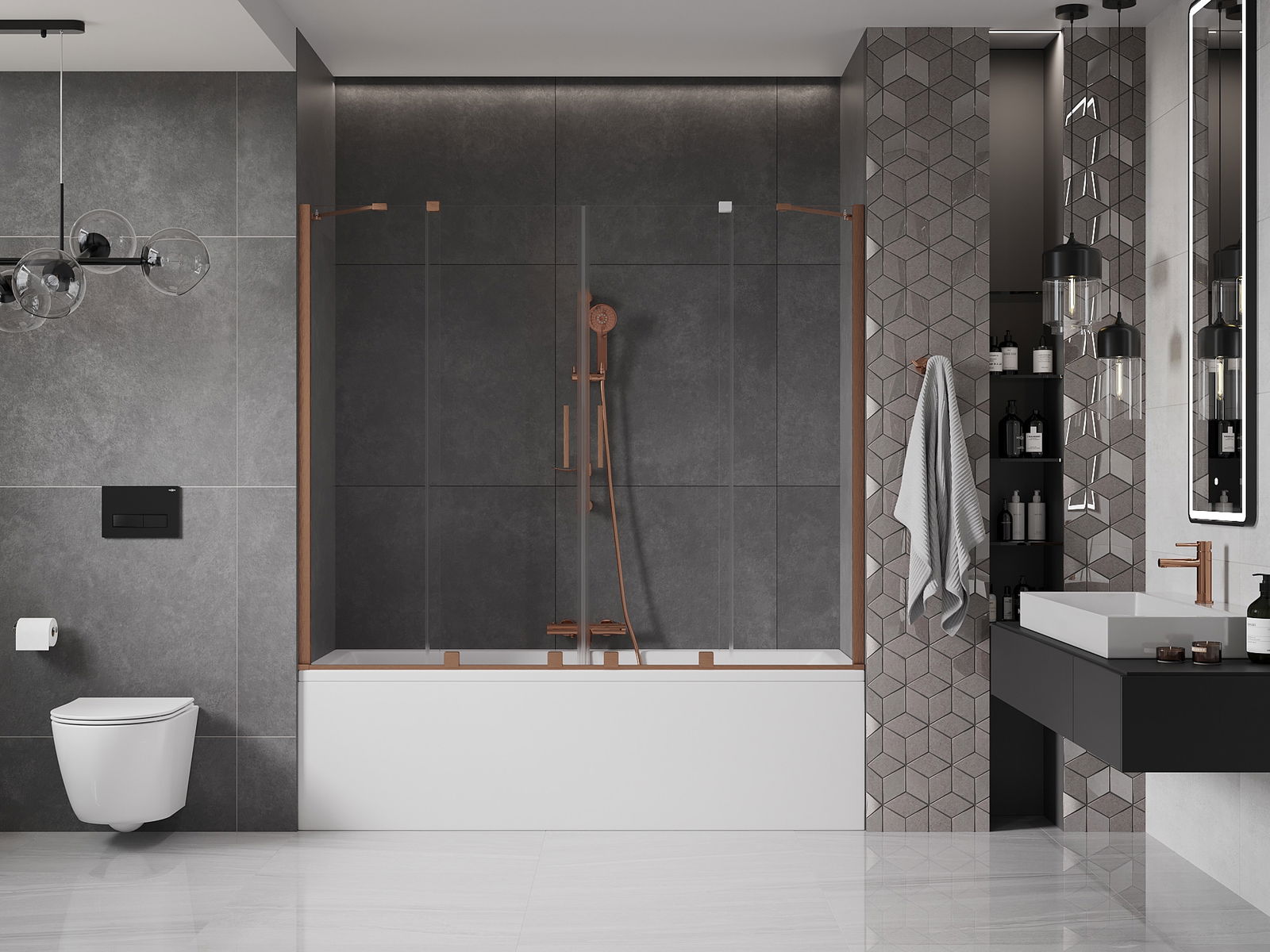 Mexen Velar Duo mampara de bañera de 2 hojas corredizas 170 x 150 cm, transparente, cobre cepillado - 896-170-000-02-65