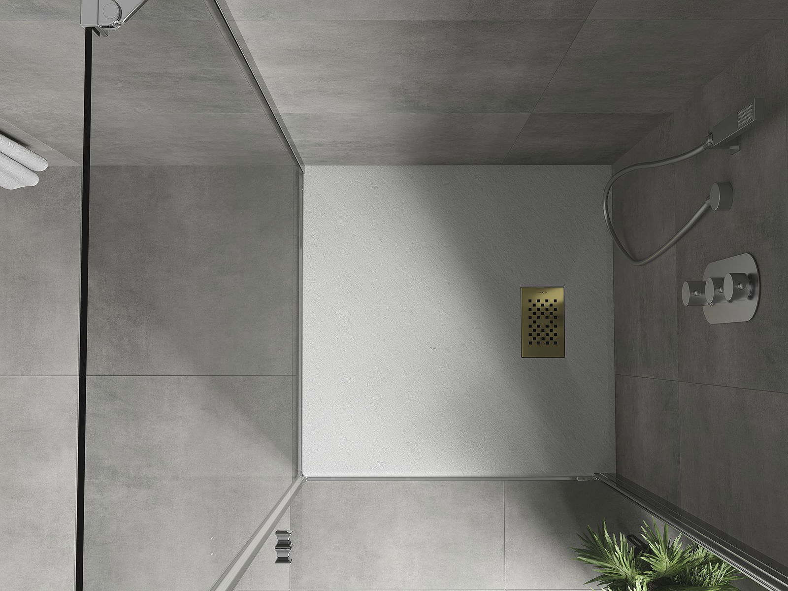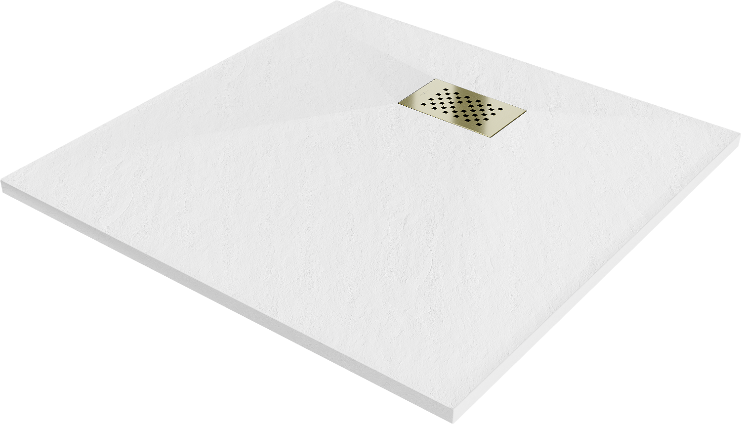 Mexen Hugo plato de ducha cuadrado SMC 80 x 80 cm, blanco, cubierta dorada - 42108080-G