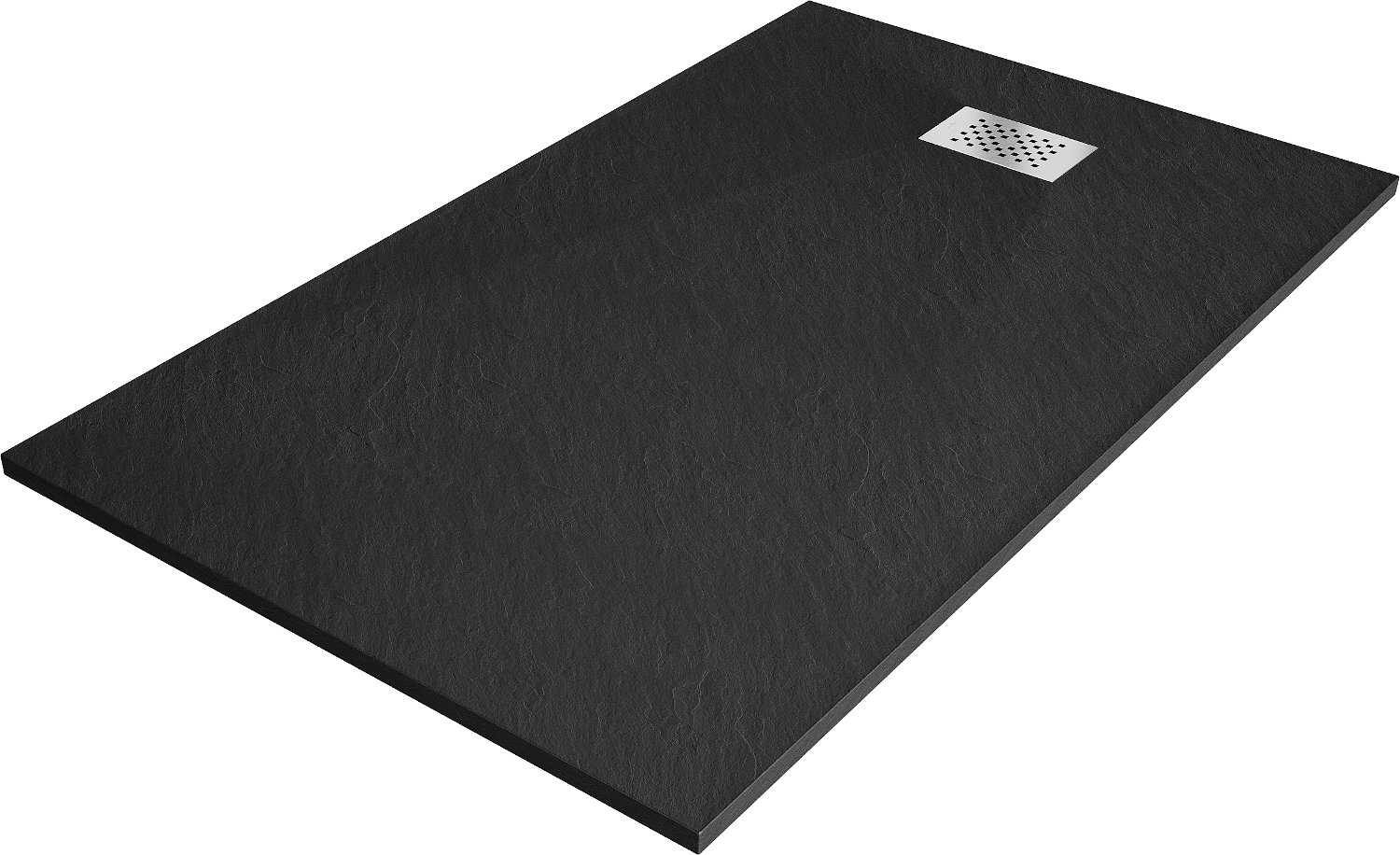 Mexen Hugo plato de ducha rectangular SMC 160 x 70 cm, negro, tapa inox - 42707016-X