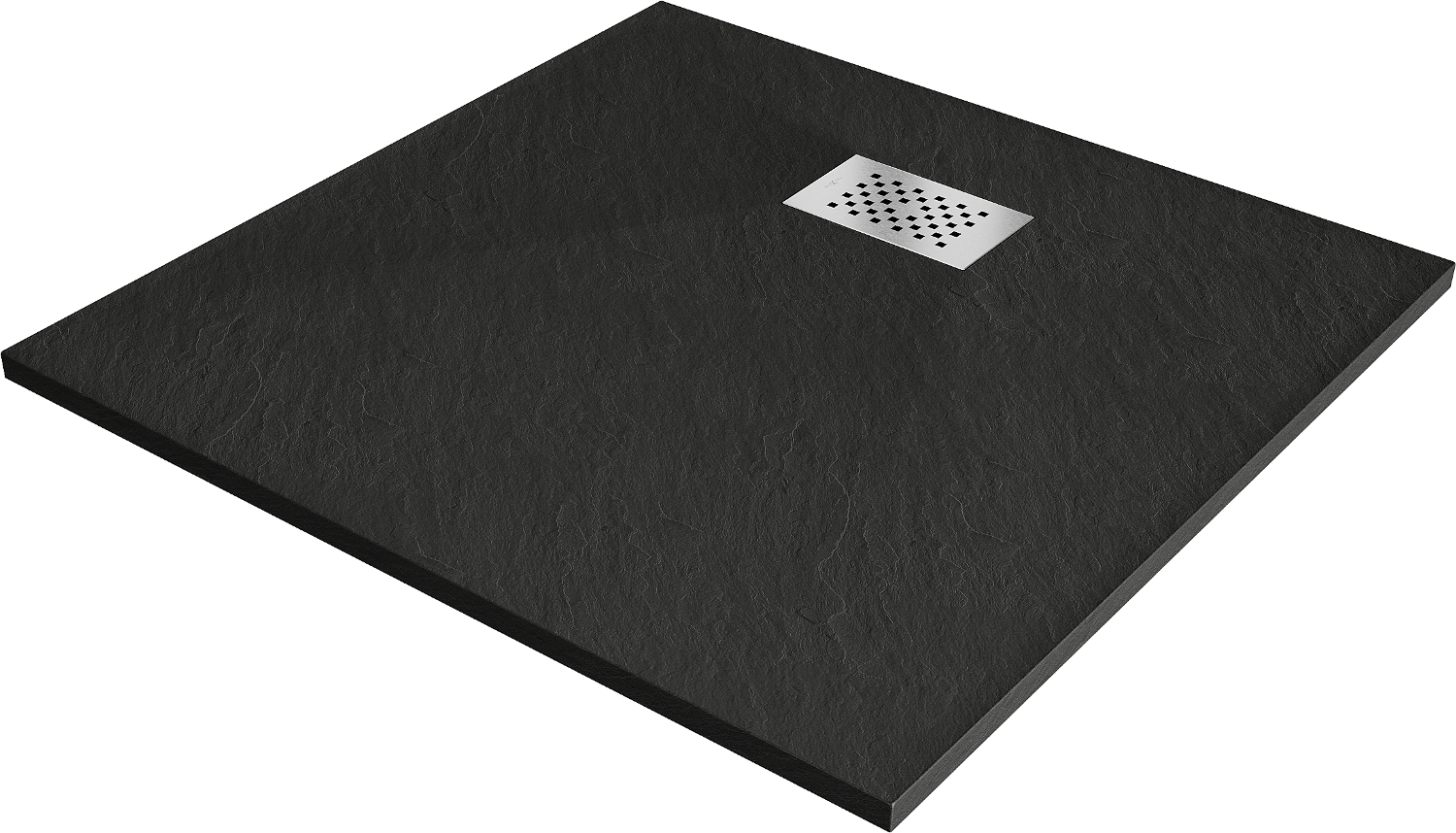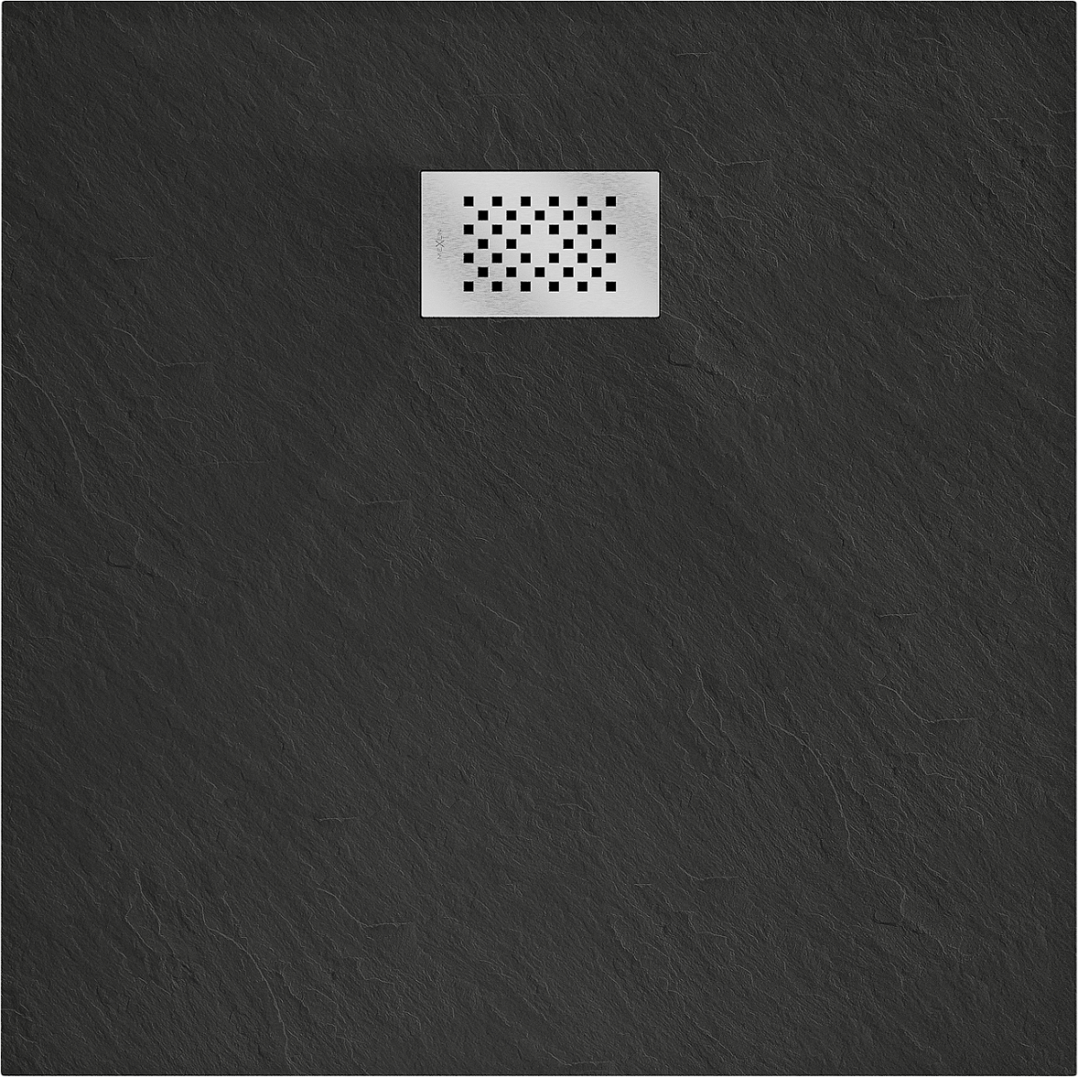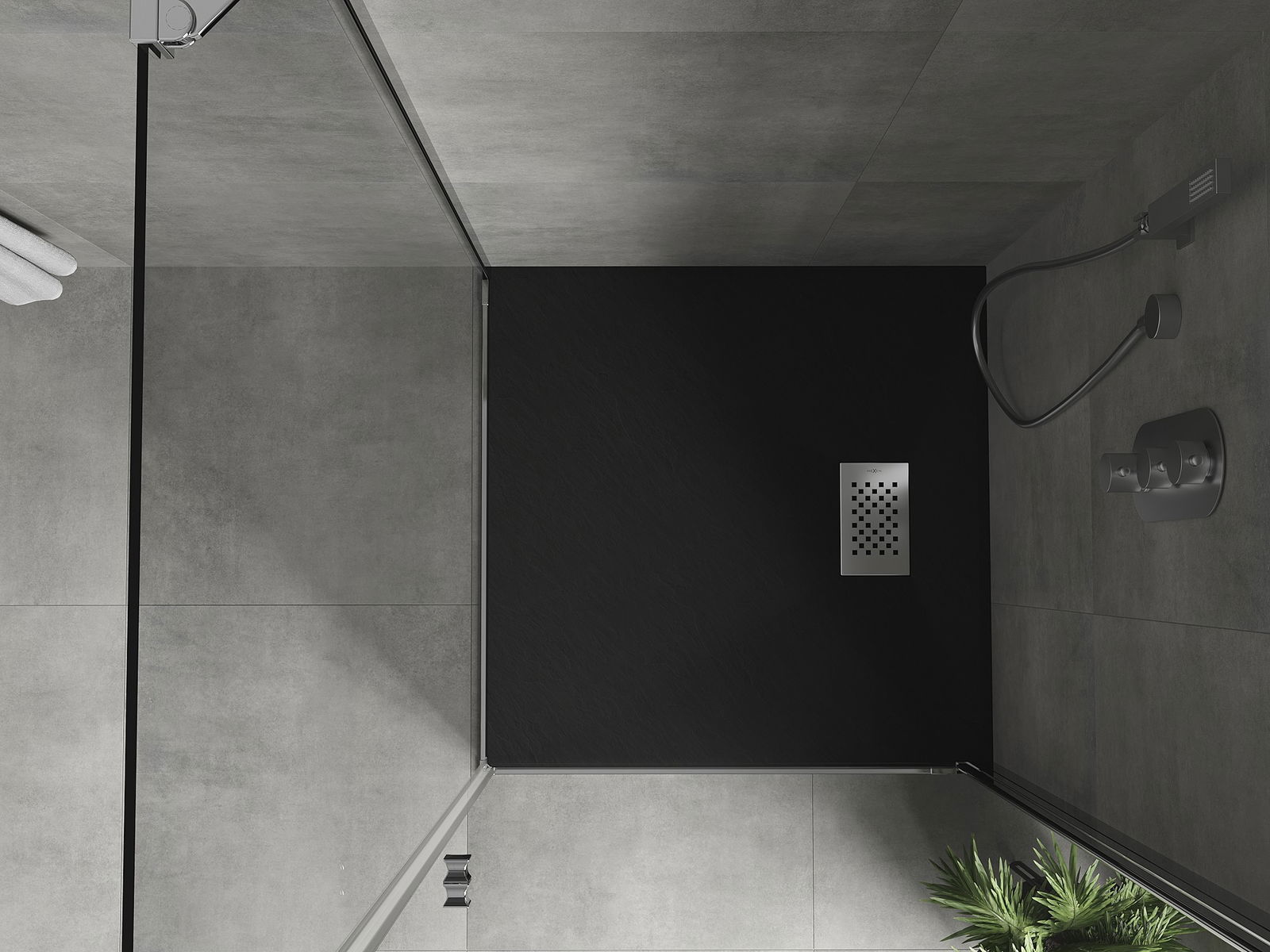 Mexen Hugo plato de ducha cuadrado SMC 90 x 90 cm, negro, cubierta inox - 42709090-X