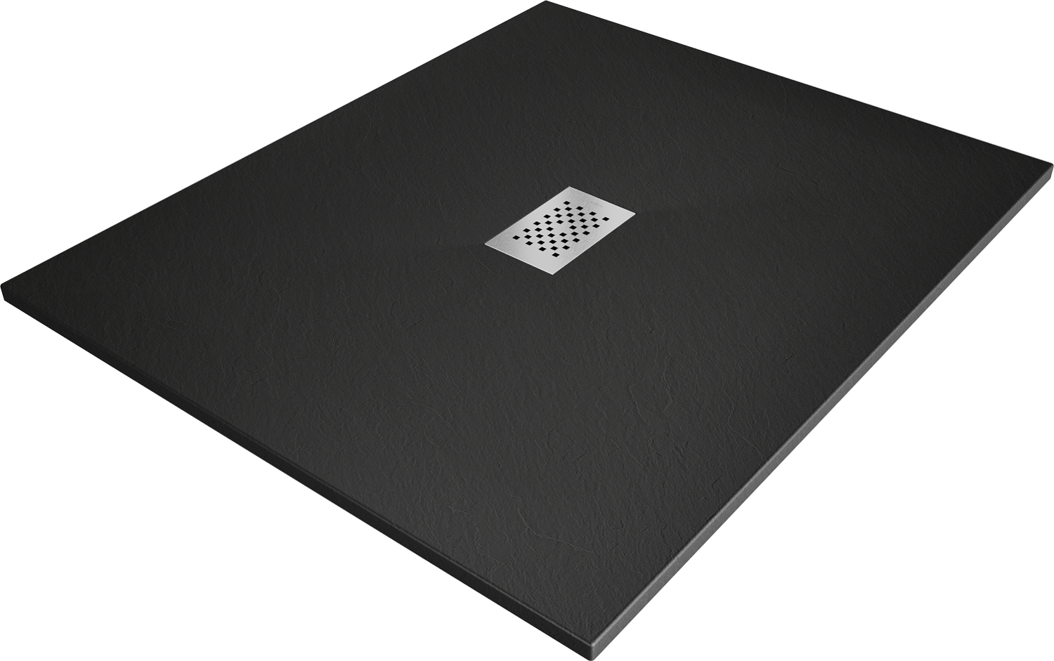 Mexen Hugo plato de ducha rectangular SMC 140 x 100 cm, negro, cubierta inox - 42701014-X