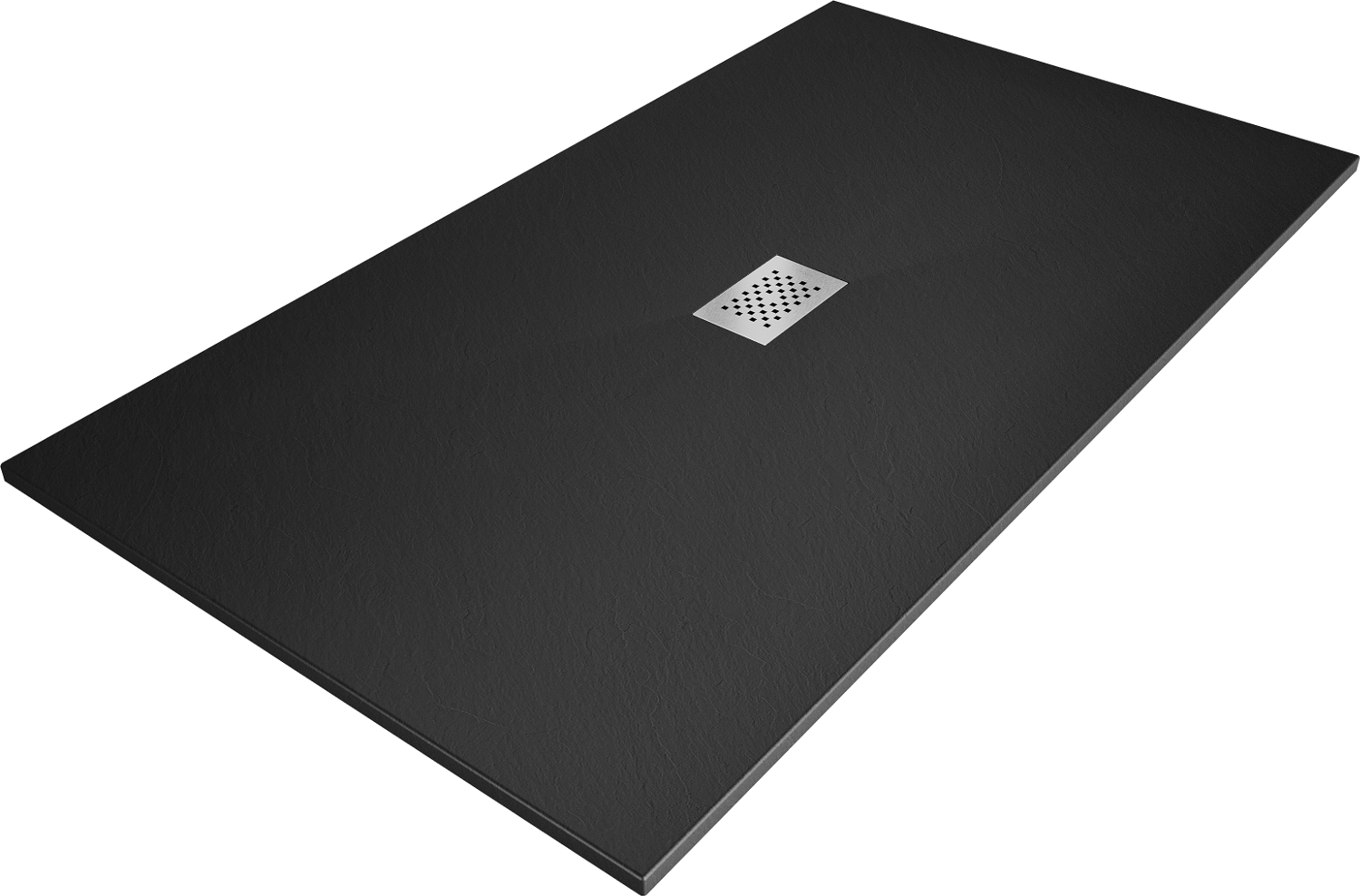 Mexen Hugo plato de ducha rectangular SMC 150 x 100 cm, negro, rejilla inox - 42701015-X