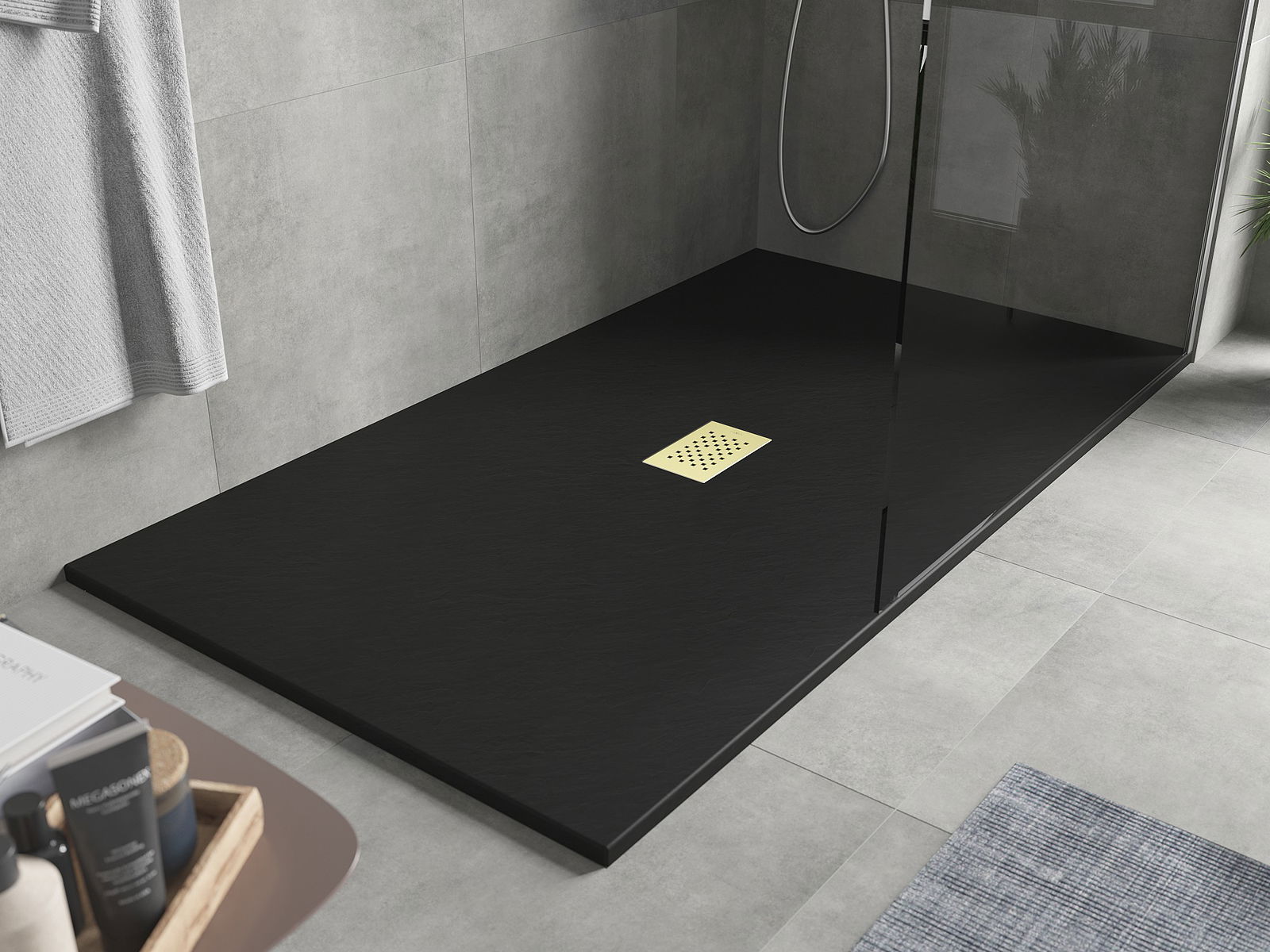 Mexen Hugo plato de ducha rectangular SMC 200 x 100 cm, negro, rejilla dorada - 42701020-G