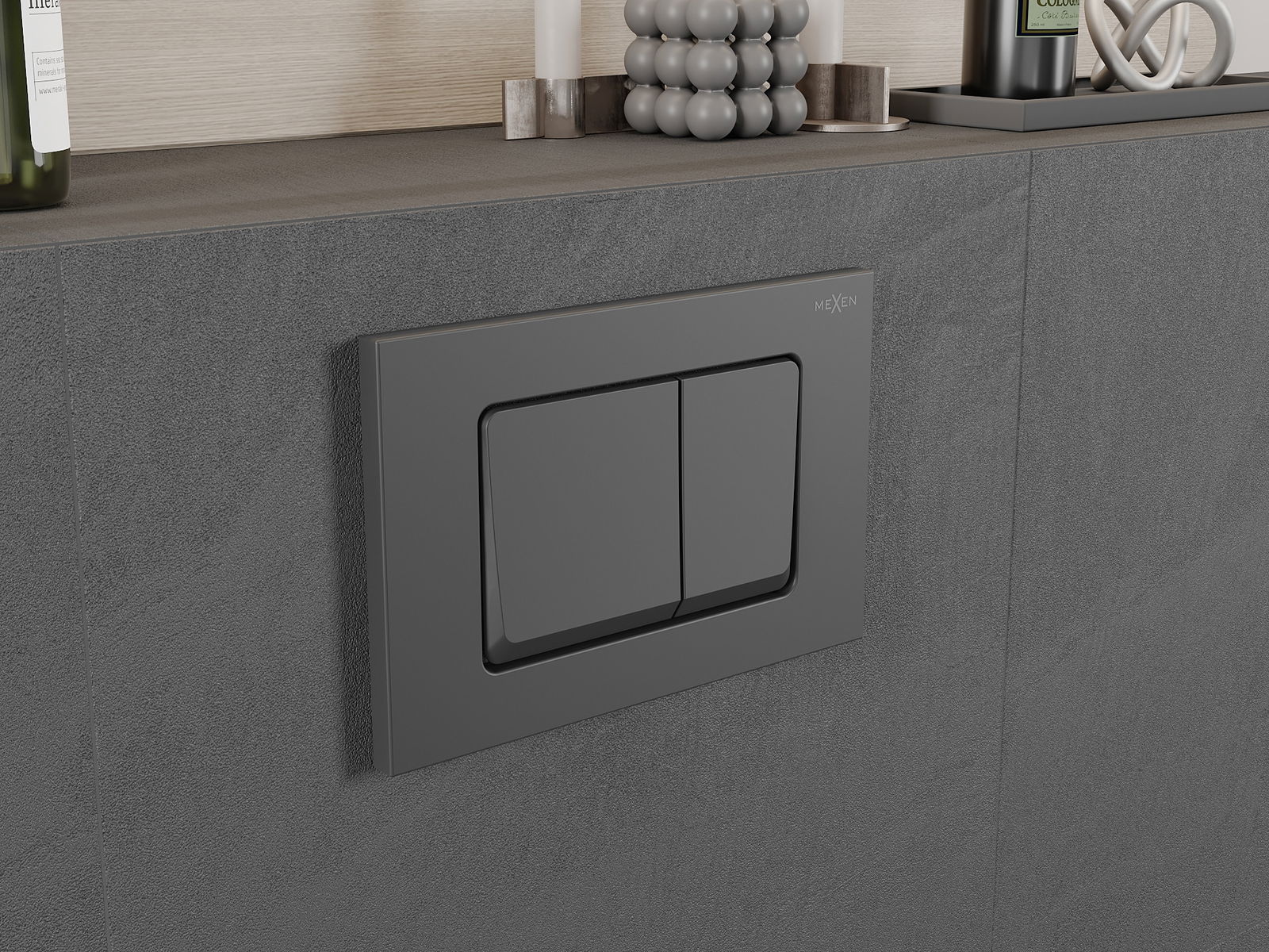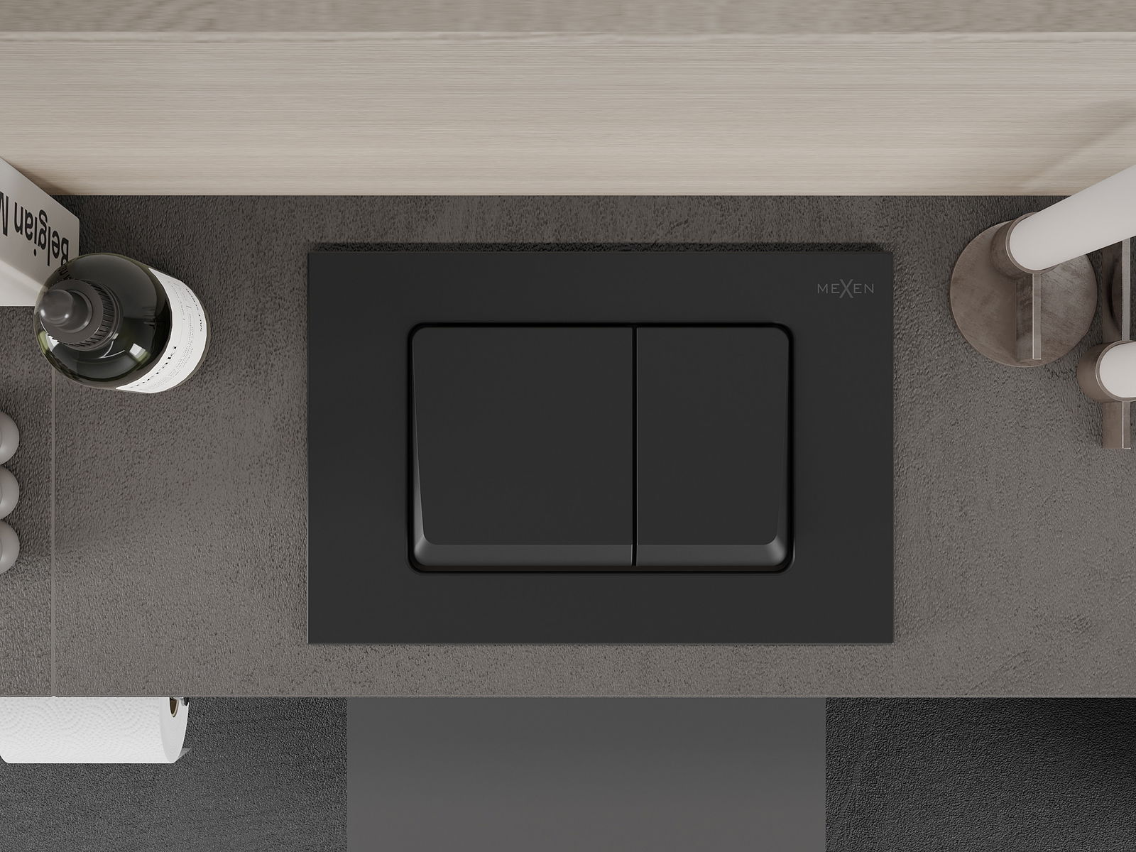 El botón está diseñado para los marcos Mexen de la serie XS. Puede montarse tanto desde el frente como desde la parte superior del marco, lo que aumenta su versatilidad. Esta solución facilita la instalación en diversas condiciones de montaje. Gracias a esto, el manejo del enjuague es cómodo e intuitivo.