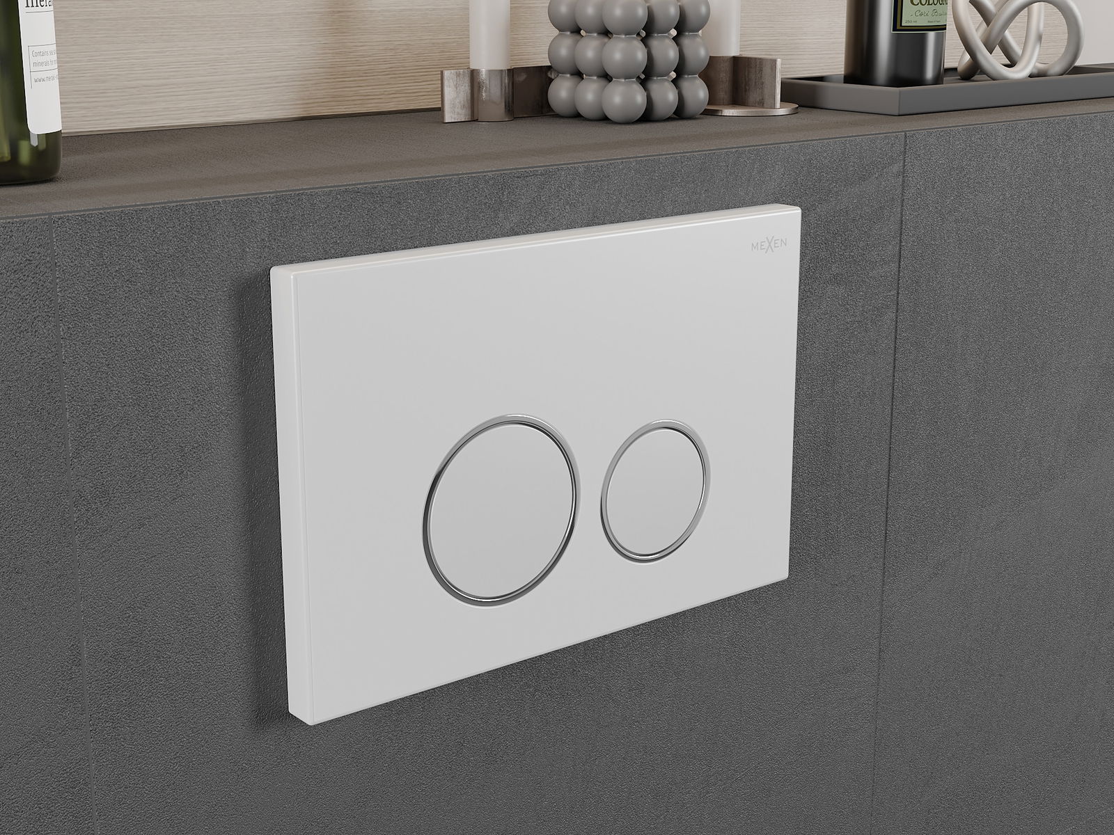 El botón está diseñado para bastidores empotrados, donde el lugar de montaje se encuentra en la parte frontal de la construcción. Esta ubicación garantiza un acceso fácil y un manejo cómodo de la descarga.