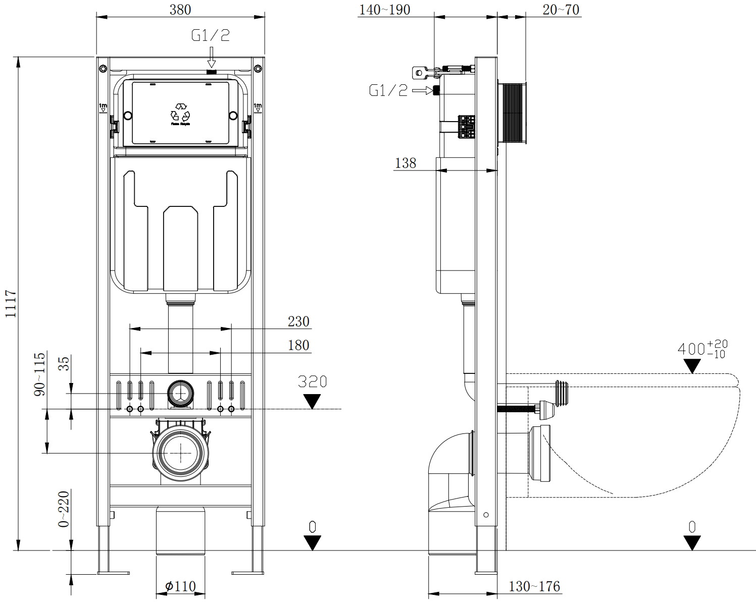 Mexen Fenix es una estructura empotrada para WC que se caracteriza por su alta calidad y funcionalidad. Con una altura de 111,7 cm, un ancho de 38 cm y un grosor de 19,2 cm, es ideal para diferentes construcciones de paredes, tanto completas como de yeso. Gracias a la posibilidad de ajustar las patas y los soportes, la instalación es fácil en suelos con un grosor de 0-22 cm. La descarga mecánica y la posibilidad de ajustar la cantidad de agua de descarga (6/4 L, 4,5/3 L) aumentan el ahorro y la comodidad de uso.