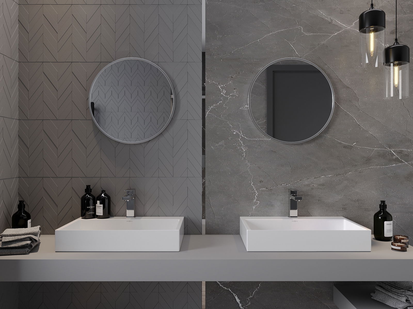 Mexen Loft espejo de baño redondo 50 cm, marco de acero inoxidable - 9850-050-050-000-10