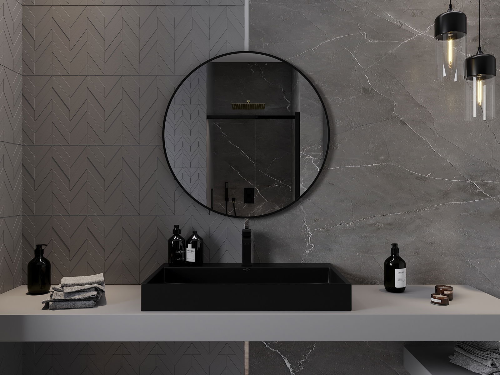 Mexen Loft espejo de baño redondo 85 cm, marco negro - 9850-085-085-000-70