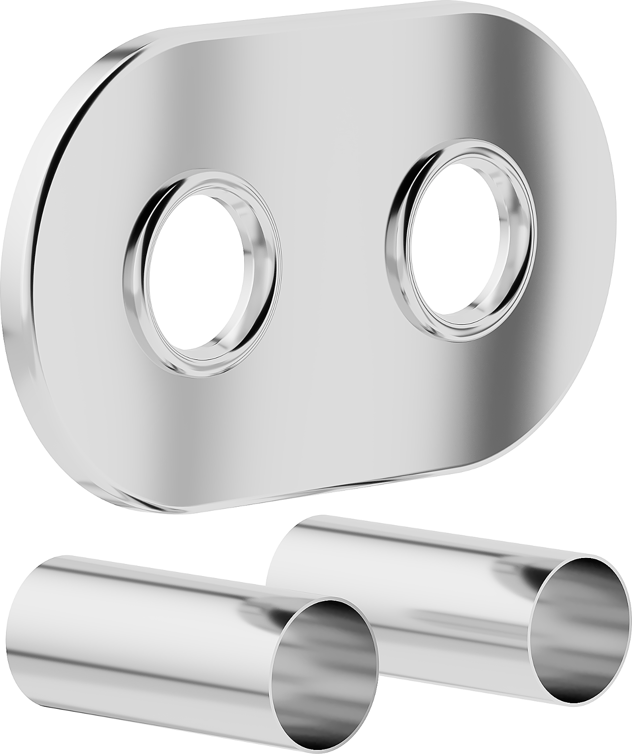 El juego de camuflaje consta de una roseta doble y dos casquillos diseñados para la instalación de conjuntos termostáticos y válvulas de radiador