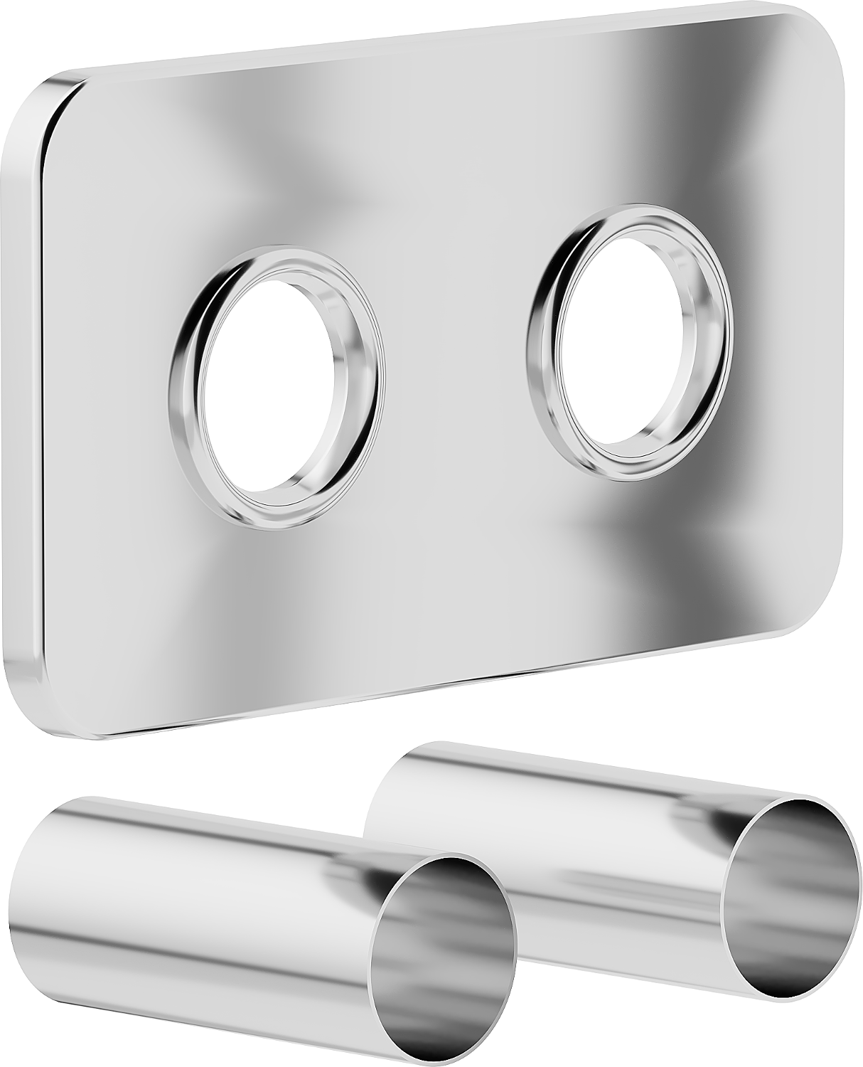 El conjunto ocultador consiste en una roseta doble y dos casquillos diseñados para la instalación de conjuntos termostáticos y válvulas de radiador
