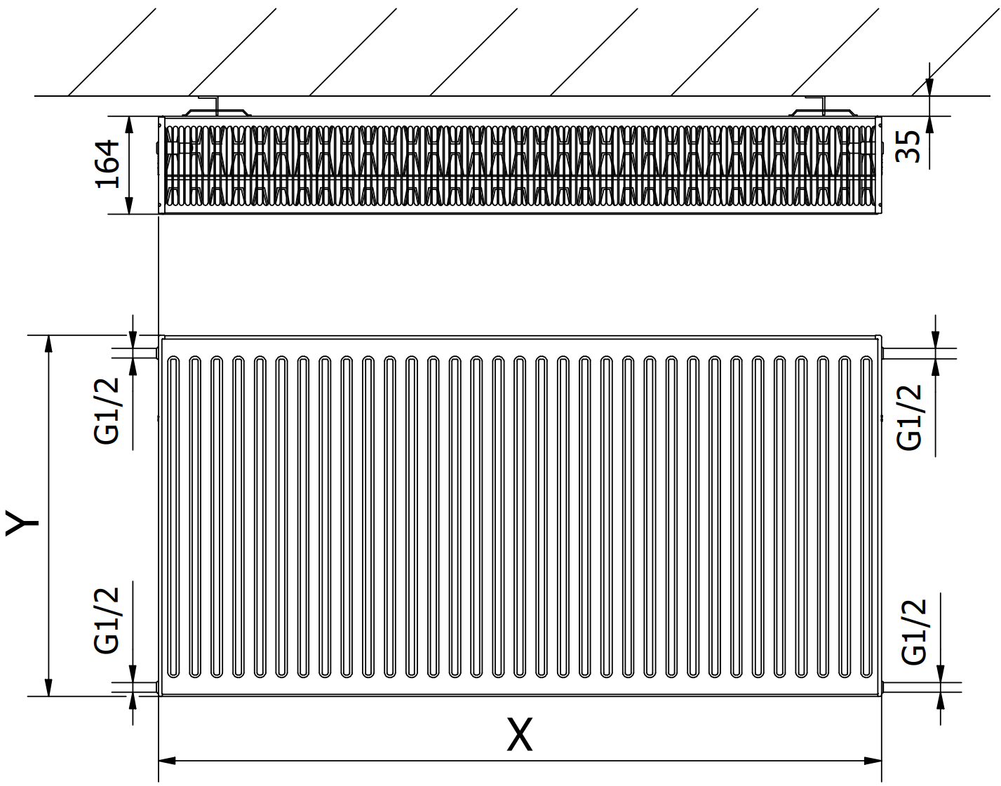 Las imágenes muestran el radiador en tamaño 600 x 1200 mm.