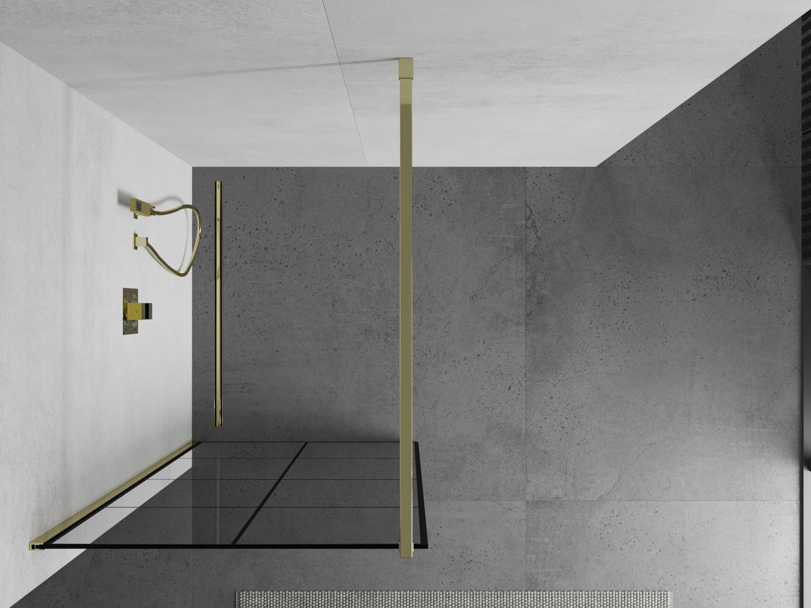 Mexen Kioto mampara de ducha Walk-in 90 x 200 cm, rejilla negra 8 mm, dorada - 800-090-101-50-77
