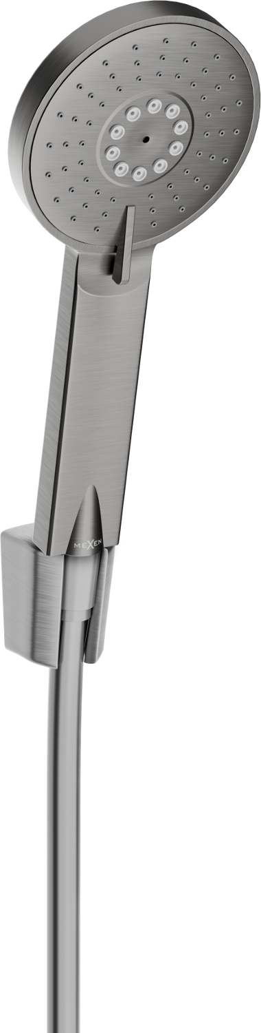 El cabezal de ducha tiene tres tipos de chorros, que se cambian mediante un interruptor. Ofrece total libertad y la posibilidad de adaptarse a las necesidades del usuario, ofreciendo un chorro delicado o más fuerte y más concentrado.