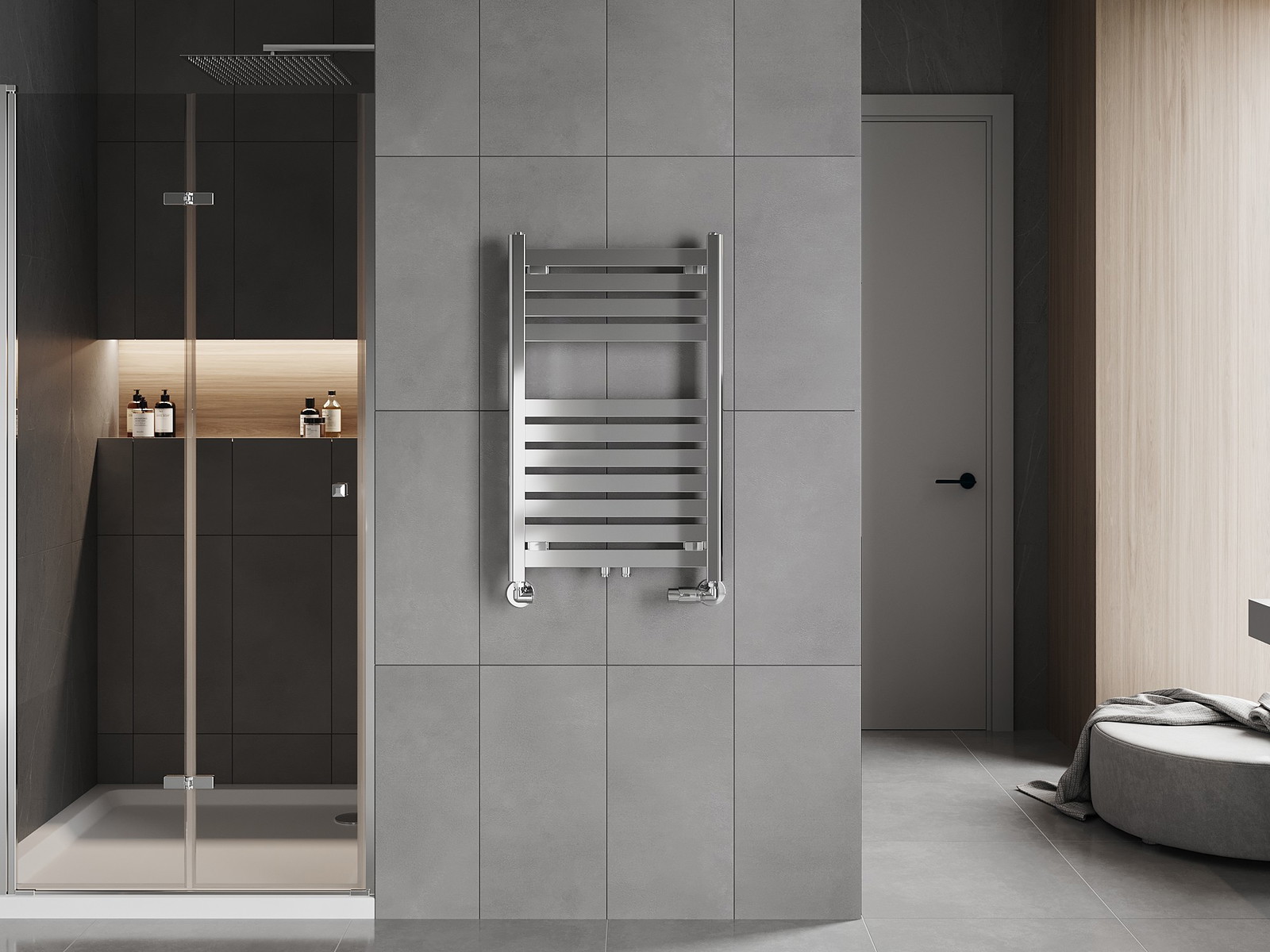 Mexen Uran es un moderno radiador de baño, que gracias a sus dimensiones de 800 x 500 mm y su potencia térmica de 287 W, es ideal para cualquier baño. Fabricado en acero, cubierto con un revestimiento de alta calidad, resistente a la corrosión, garantiza durabilidad prolongada y un aspecto elegante en color cromo. Es fácil de montar gracias a las diversas opciones de conexión - inferior o central, y permite la instalación de una resistencia. Gracias a la reacción al fuego A1 y la capacidad de trabajar a temperaturas altas de hasta 95 °C, es una solución confiable para tu baño.