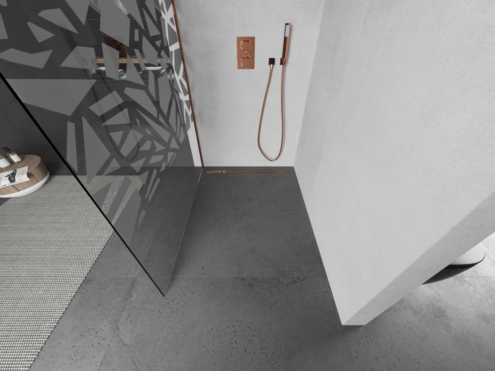 Mexen Kioto panel de ducha Walk-in 80 x 200 cm, patrón blanco de 8 mm, oro rosa - 800-080-101-60-85
