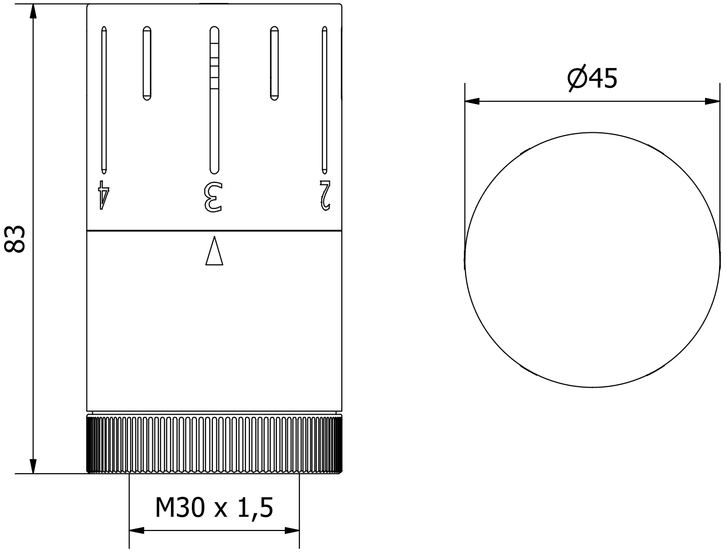 Es un tamaño estándar de rosca utilizado en muchos cabezales termostáticos, especialmente en dispositivos utilizados en instalaciones de calefacción. El símbolo M30 significa que el diámetro exterior de la rosca es de 30 mm, y 1,5 mm indica que el paso de la rosca es de 1,5 mm.