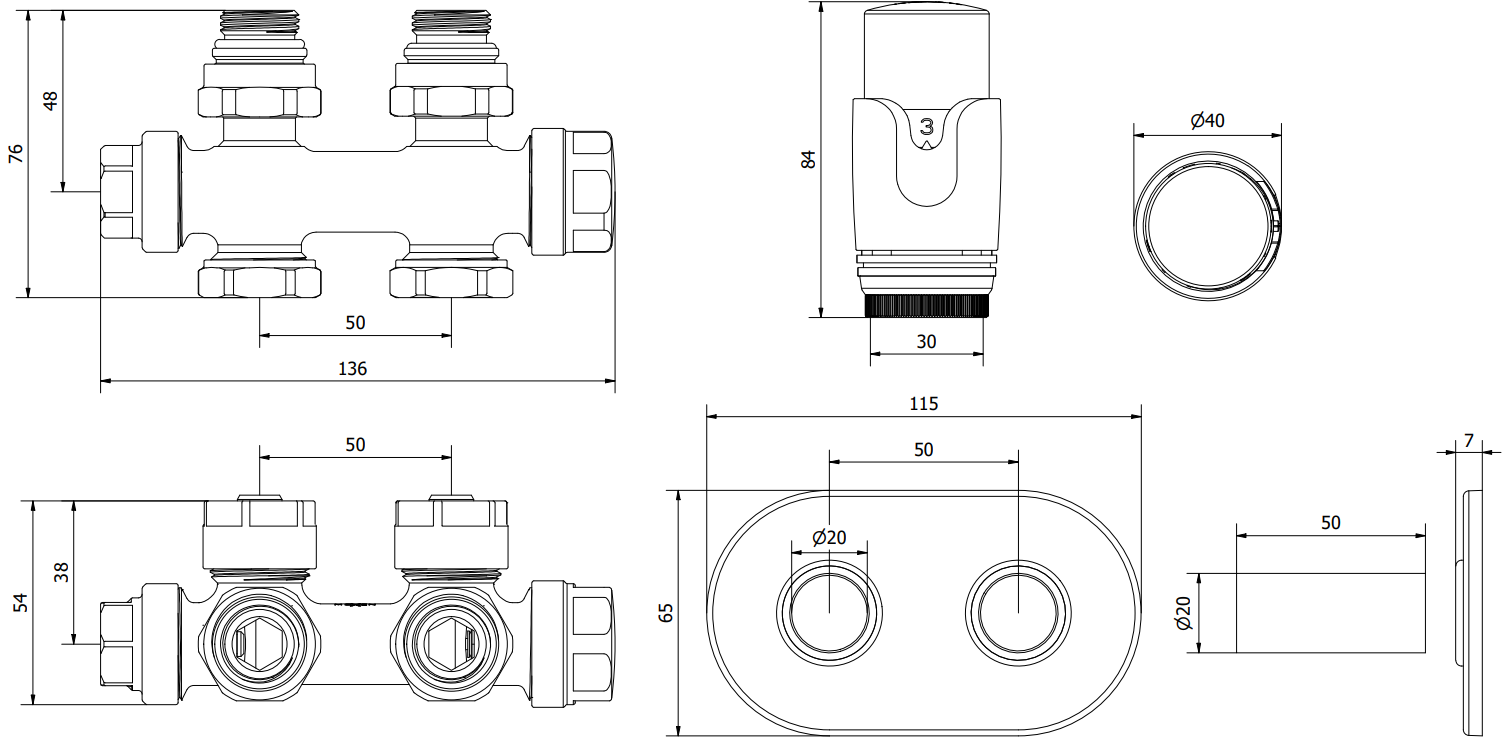 Espaciado de los agujeros para conexiones de radiador: 50 mm