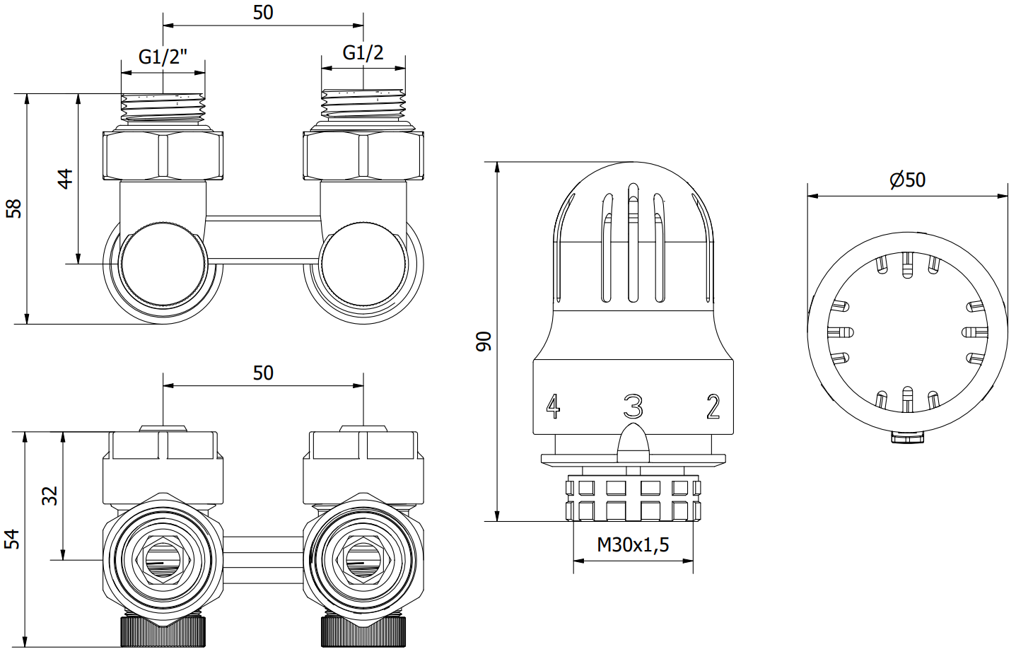 Diámetro de conexión: G 1/2" y pex 16x2 mm