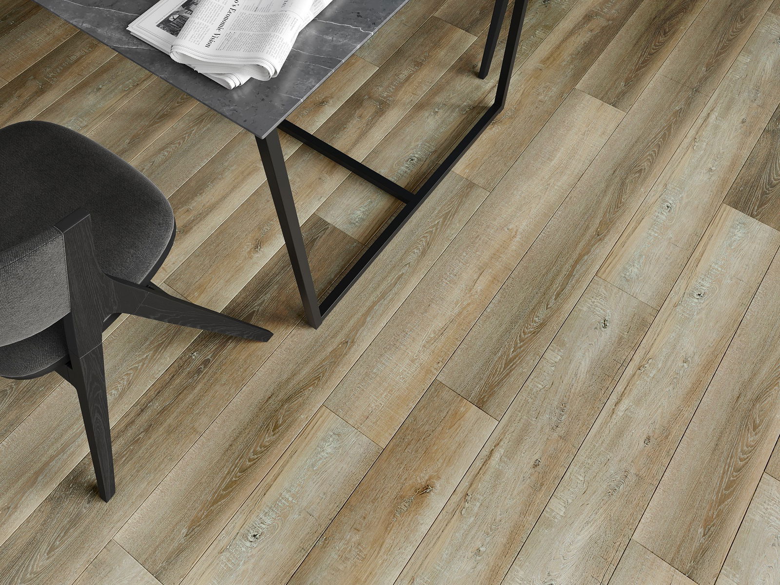 El suelo se caracteriza por una alta clase de abrasión: está destinado al uso público con tráfico medio y también puede usarse en condiciones domésticas intensivas, como en un pasillo, un baño o una cocina.