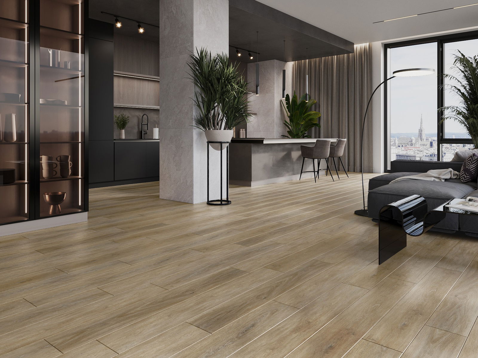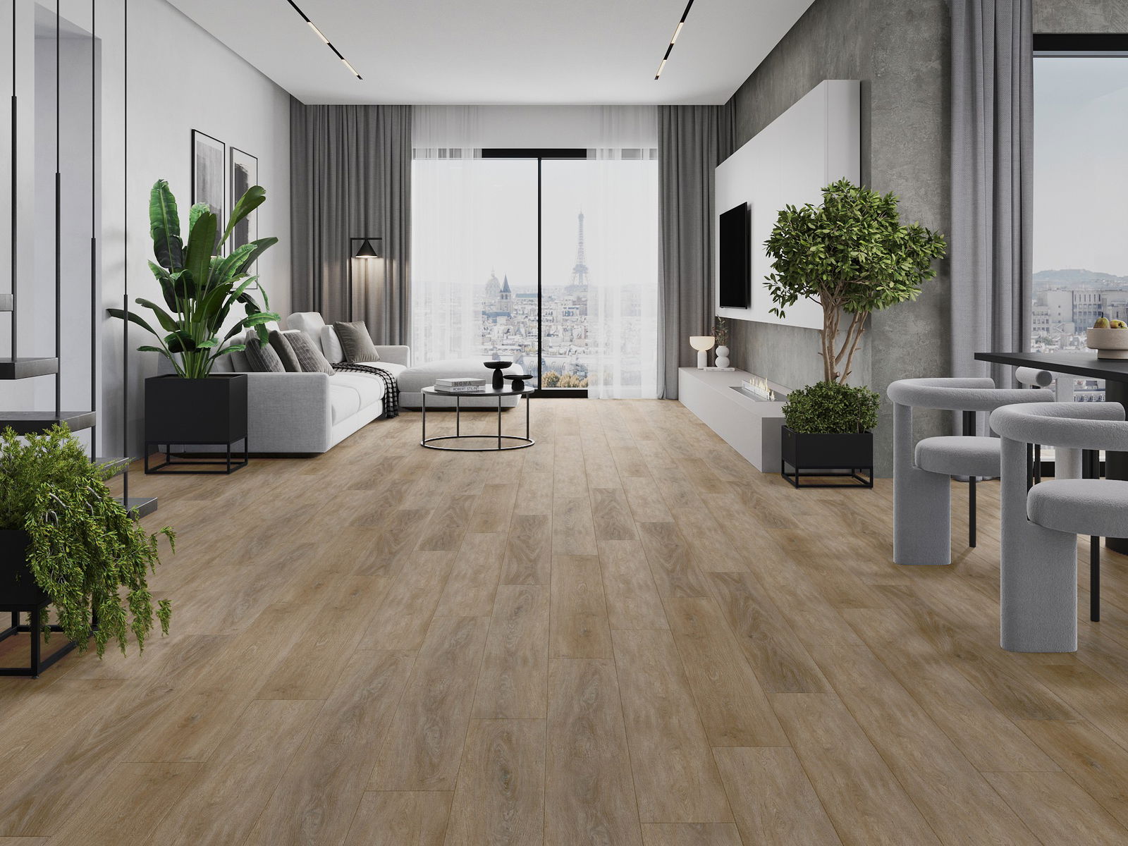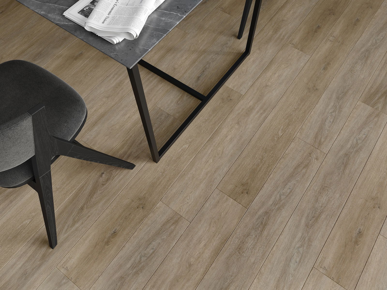 Los paneles tienen una junta de 4 lados: cada lado ha sido fresado de tal manera que al colocarlo se crea una unión en forma de V. Este diseño hace que el suelo adquiera una estructura más definida, lo que le proporciona profundidad y un carácter estético. Este efecto es especialmente apreciado en decoraciones modernas, donde los detalles resaltan el aspecto único del interior.