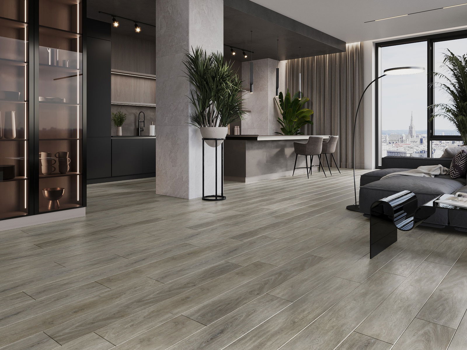 Los paneles tienen una junta de 4 lados: cada lado ha sido fresado de tal manera que al colocarlo se crea una unión en forma de V. Este diseño hace que el suelo adquiera una estructura más definida, lo que le proporciona profundidad y un carácter estético. Este efecto es especialmente apreciado en decoraciones modernas, donde los detalles resaltan el aspecto único del interior.