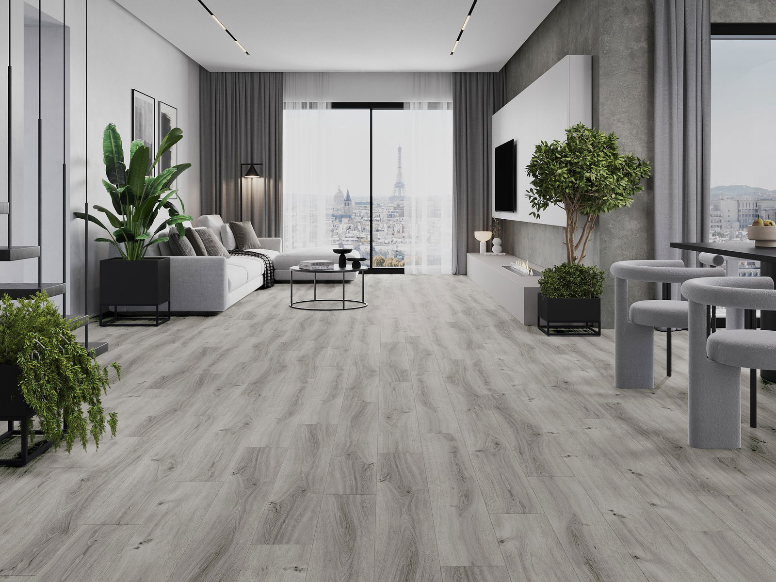 Los paneles tienen una junta de 4 lados: cada lado ha sido fresado de tal manera que al colocarlo se crea una unión en forma de V. Este diseño hace que el suelo adquiera una estructura más definida, lo que le proporciona profundidad y un carácter estético. Este efecto es especialmente apreciado en decoraciones modernas, donde los detalles resaltan el aspecto único del interior.