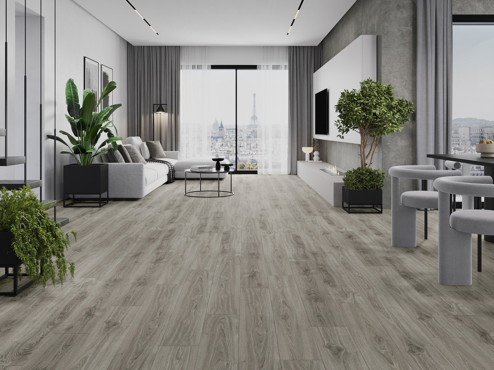 Los paneles tienen una junta de 4 lados: cada lado ha sido fresado de manera que al ensamblar se forme una conexión en forma de letra V. Este diseño hace que el suelo adquiera una estructura más definida, lo que le da profundidad y un carácter estético. Este efecto es especialmente apreciado en diseños modernos, donde los detalles resaltan la apariencia única del interior.