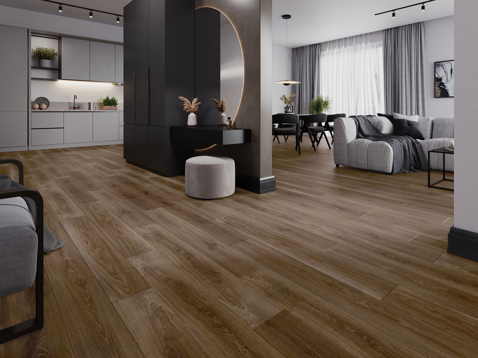 Los paneles tienen una junta de 4 lados: cada lado ha sido fresado de tal manera que al colocarlo se crea una unión en forma de V. Este diseño hace que el suelo adquiera una estructura más definida, lo que le proporciona profundidad y un carácter estético. Este efecto es especialmente apreciado en decoraciones modernas, donde los detalles resaltan el aspecto único del interior.