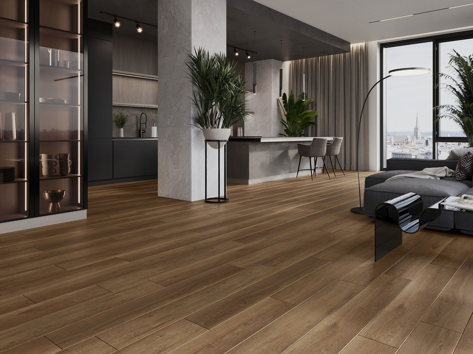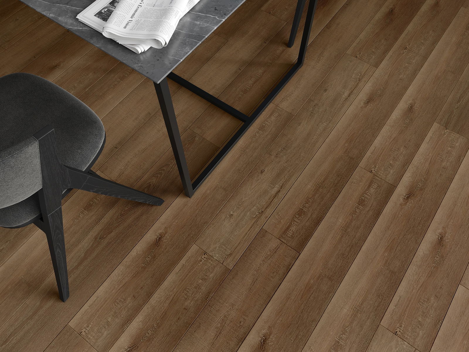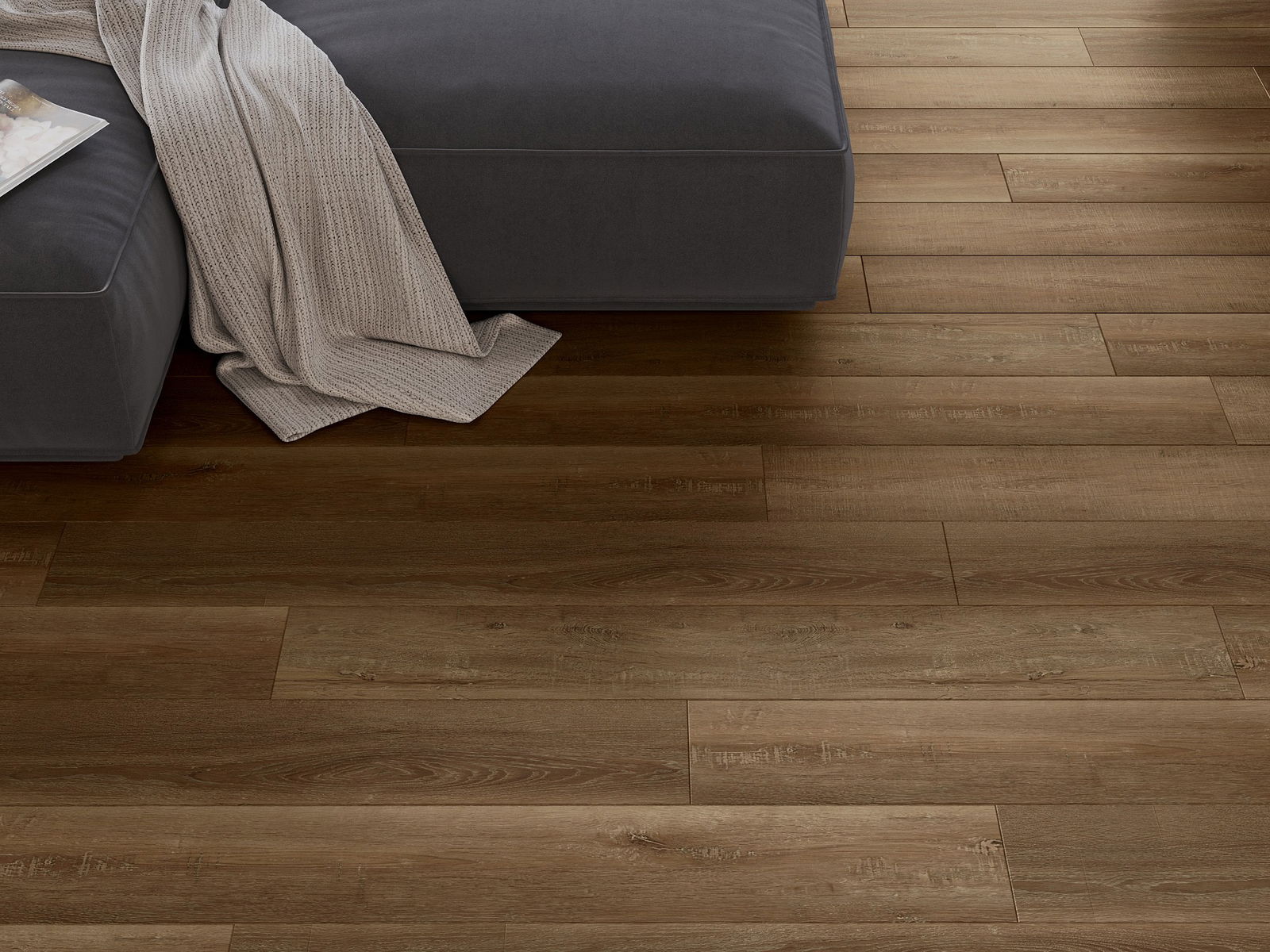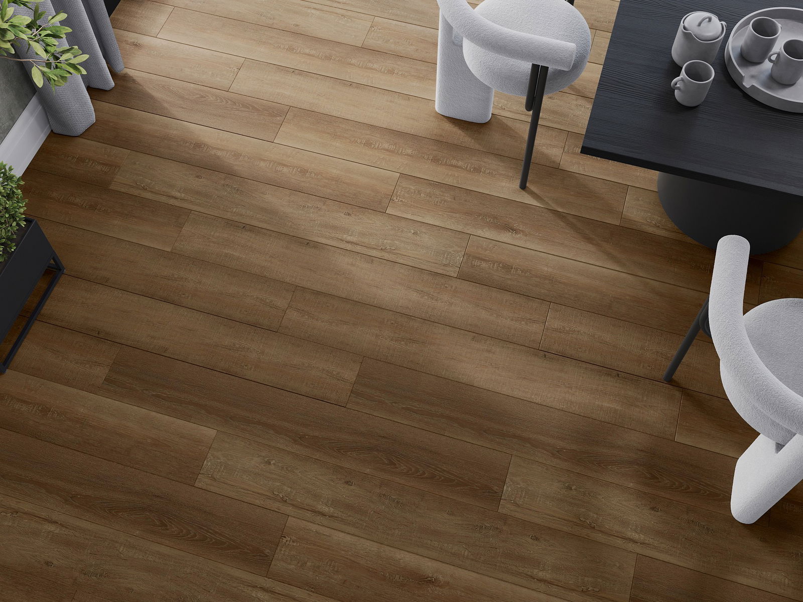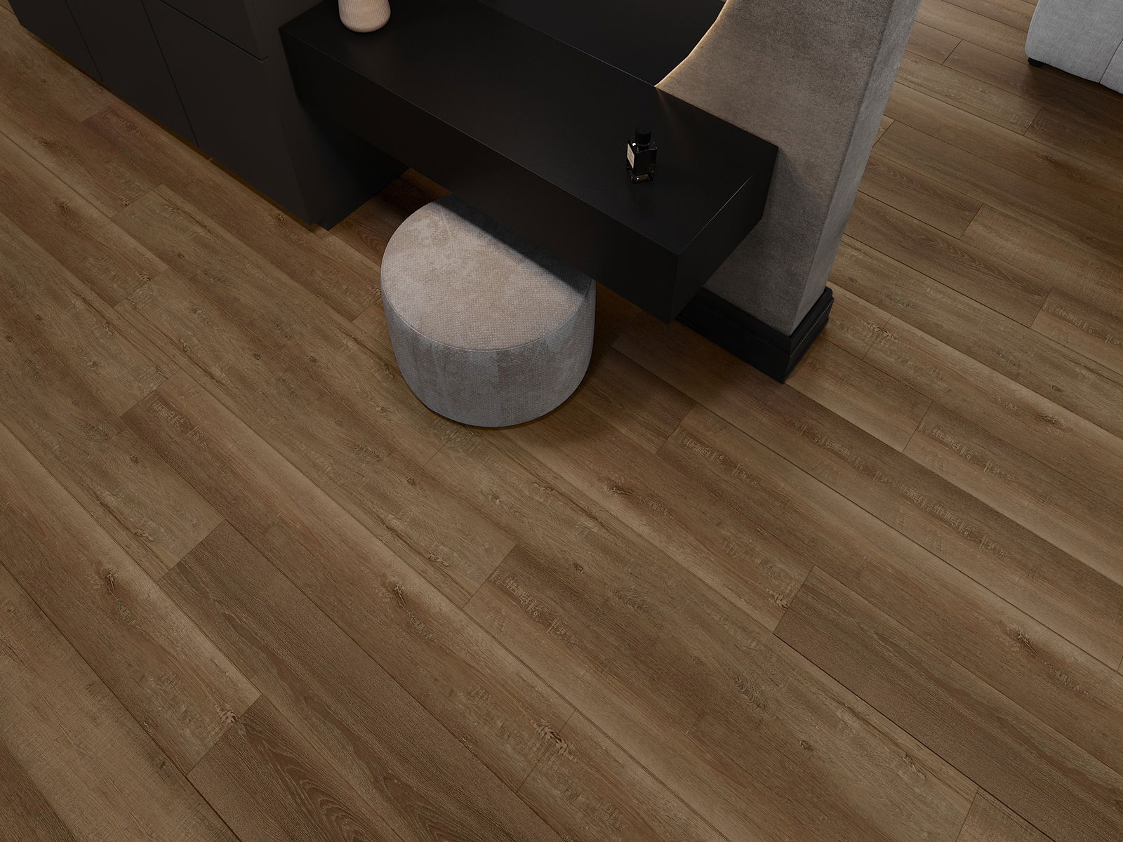 Los paneles tienen una junta de 4 lados: cada lado ha sido fresado de tal manera que al colocarlo se crea una unión en forma de V. Este diseño hace que el suelo adquiera una estructura más definida, lo que le proporciona profundidad y un carácter estético. Este efecto es especialmente apreciado en decoraciones modernas, donde los detalles resaltan el aspecto único del interior.