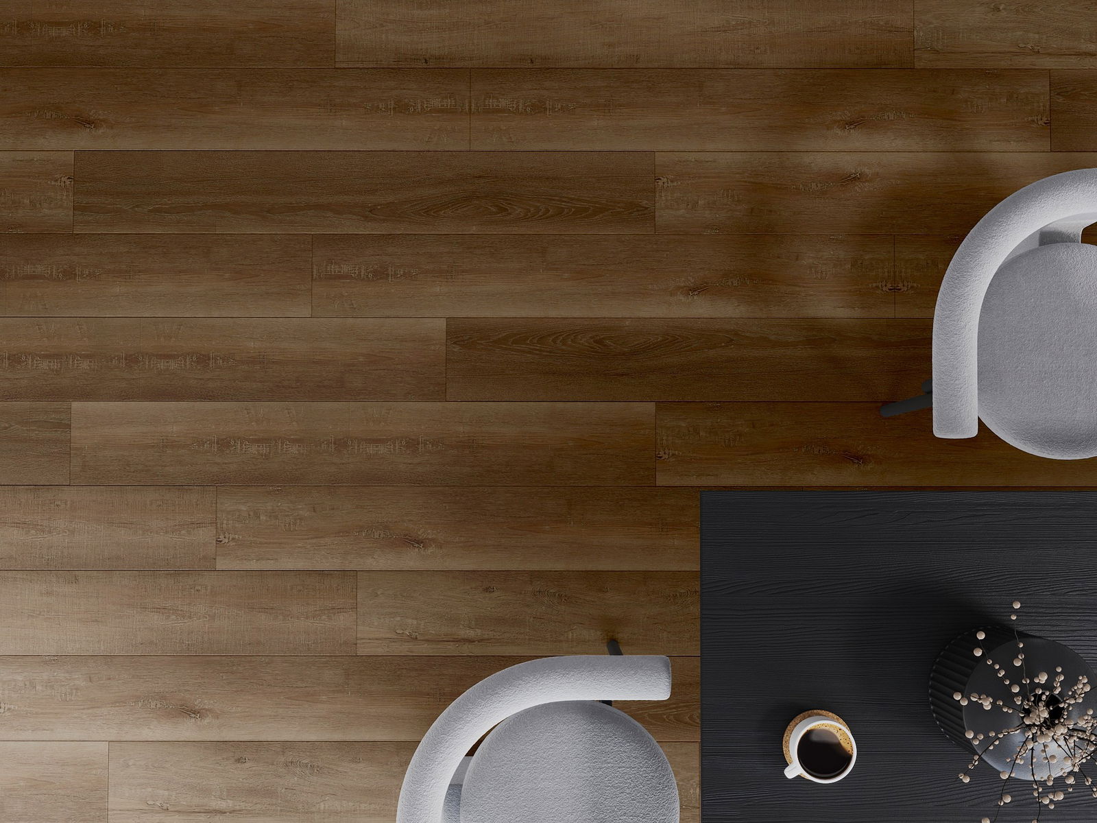 Los paneles de vinilo se distinguen por su baja resistencia térmica, lo que hace que conduzcan el calor de manera excelente y lo distribuyan uniformemente por la habitación. Gracias a esta propiedad, son la solución ideal para utilizar con calefacción por suelo radiante, tanto de agua como eléctrica.