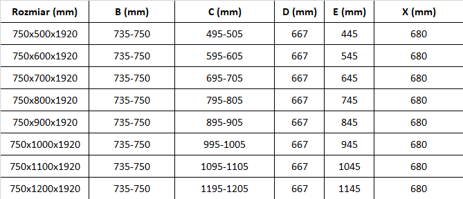Tamaño: 75x90 cm (puerta 75 cm, pared 90 cm)