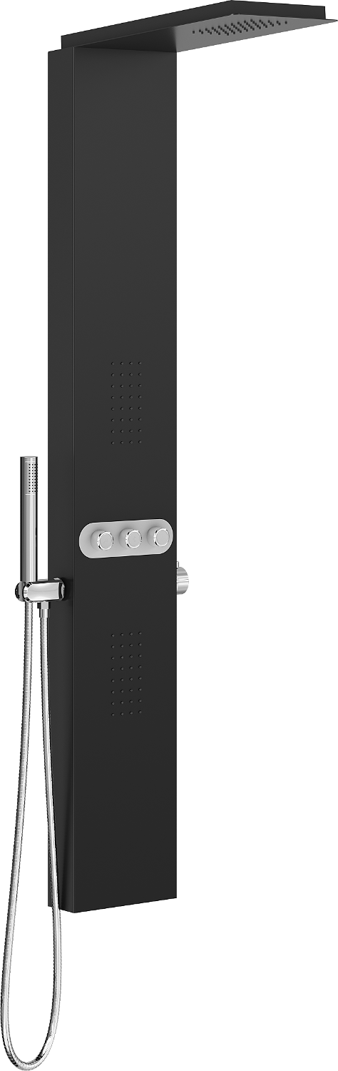 Chorro de agua estándar que imita la lluvia natural. Las gotas fluyen uniformemente sobre el cuerpo, envolviéndolo con una agradable sensación de hidratación y permitiendo sumergirse en una experiencia relajante y reconfortante para los sentidos durante el baño diario.